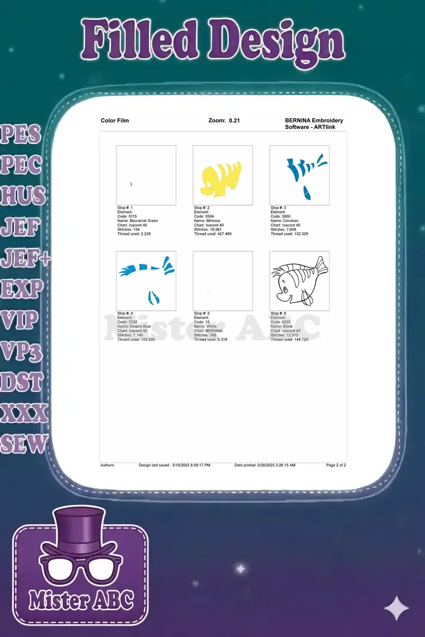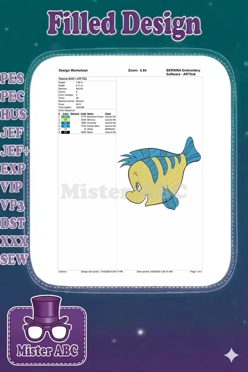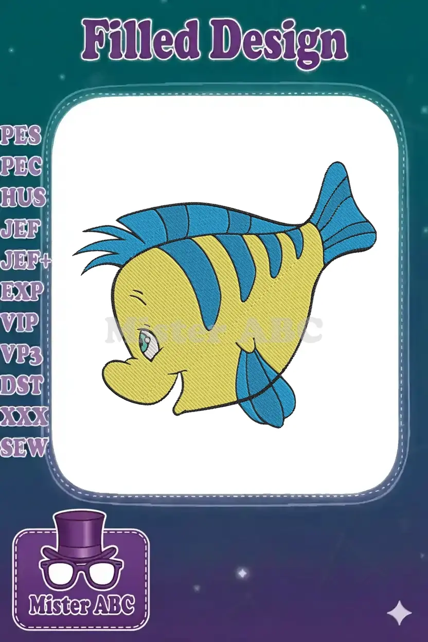 Bring the ocean’s charm to your projects with this delightful Flounder embroidery design. Perfect for fans!