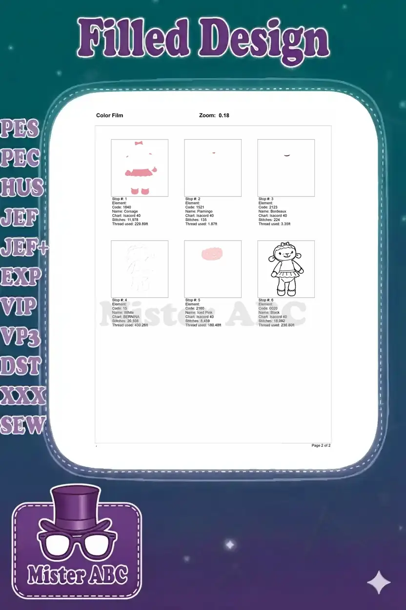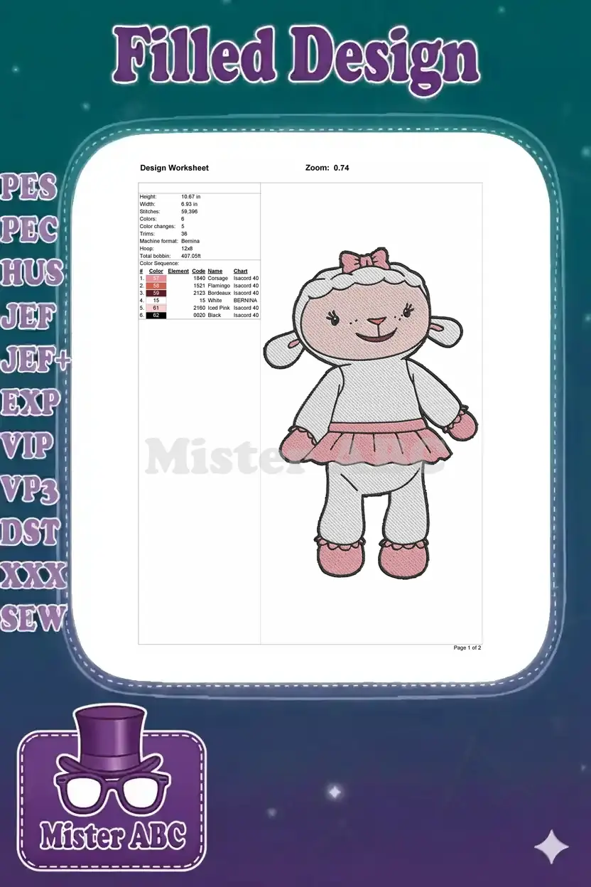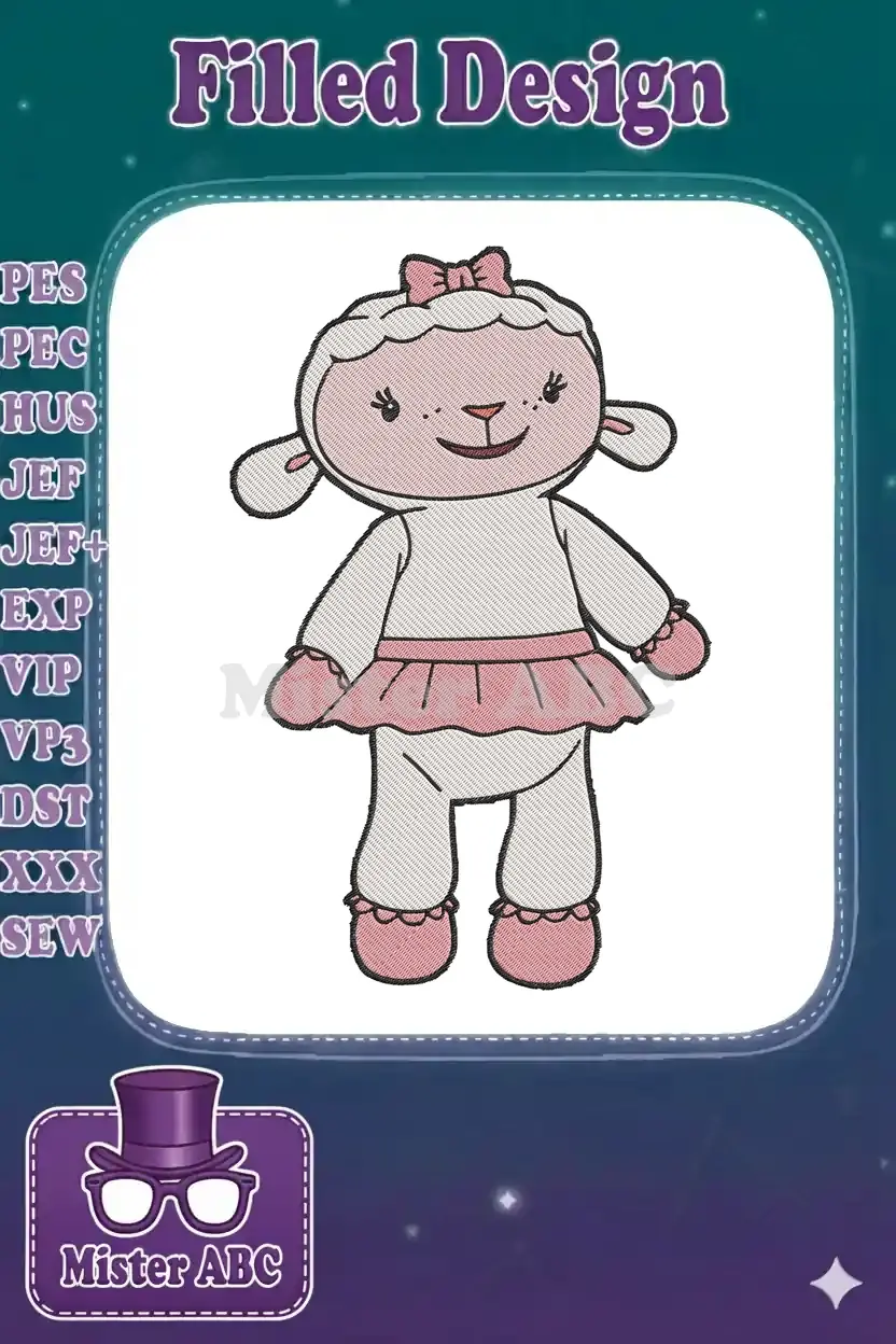 An adorable Lambie character embroidery design, perfect for children’s apparel and delightful accessories.