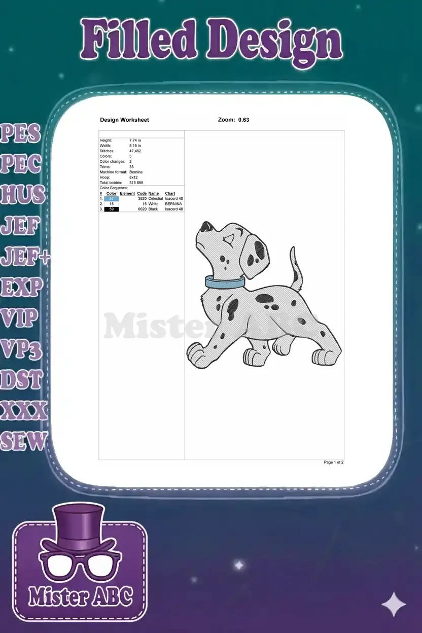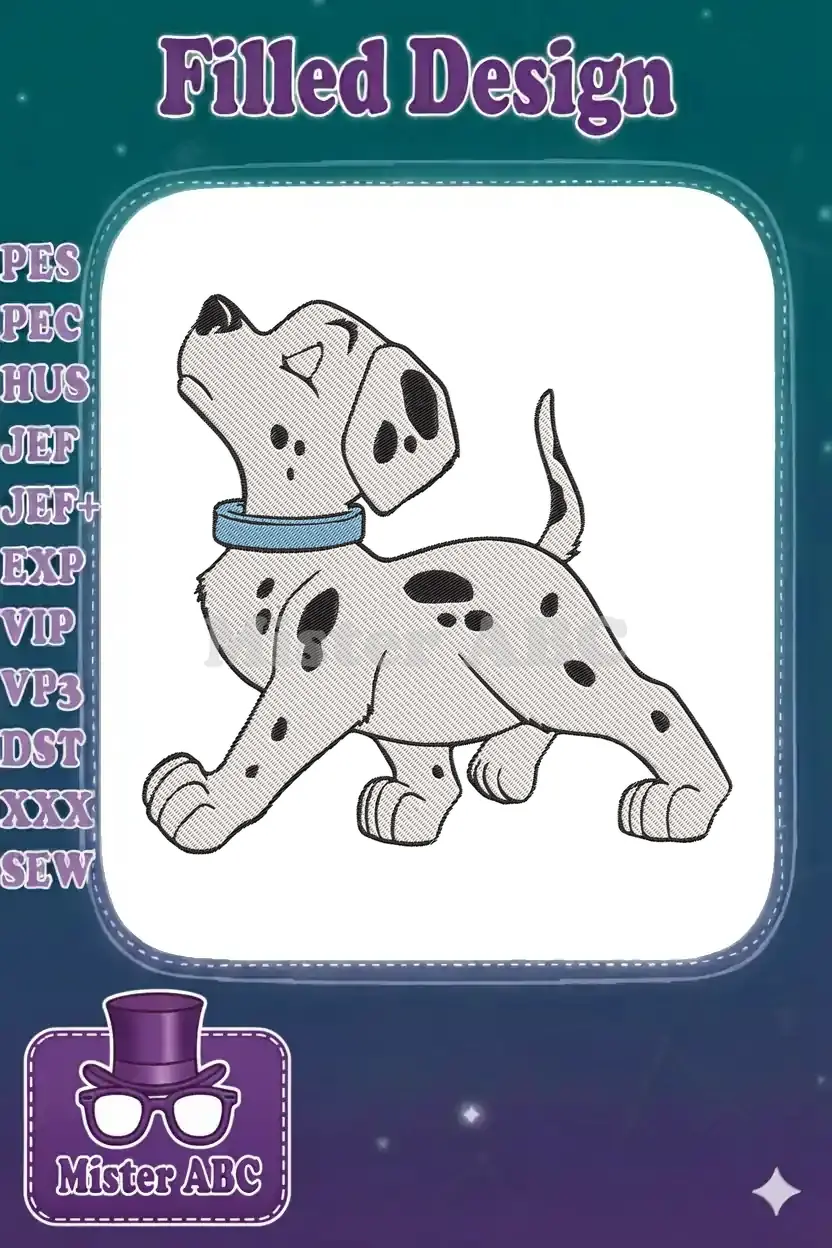 Cute spotted dalmatian puppy dog with blue collar embroidery designs