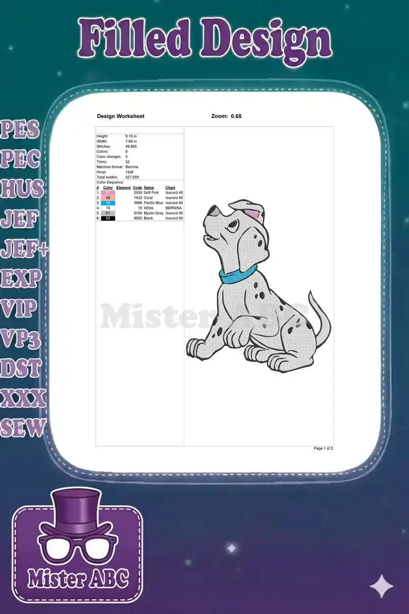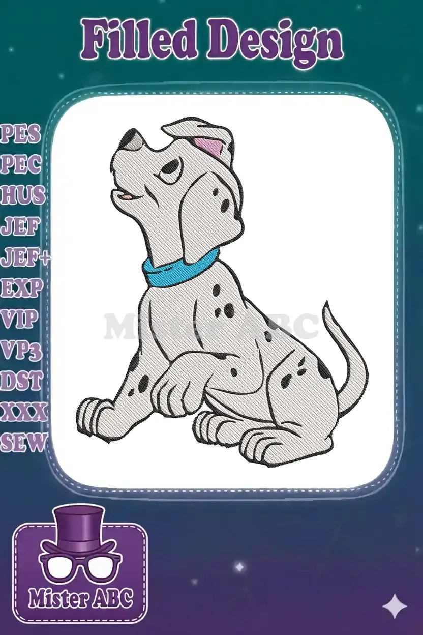 Cute Spotted Dalmatian Puppy Dog with Blue Collar Embroidery Designs