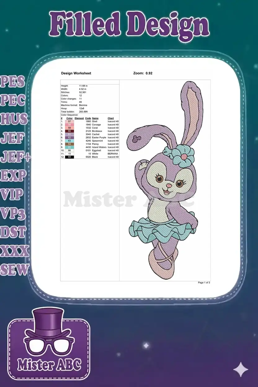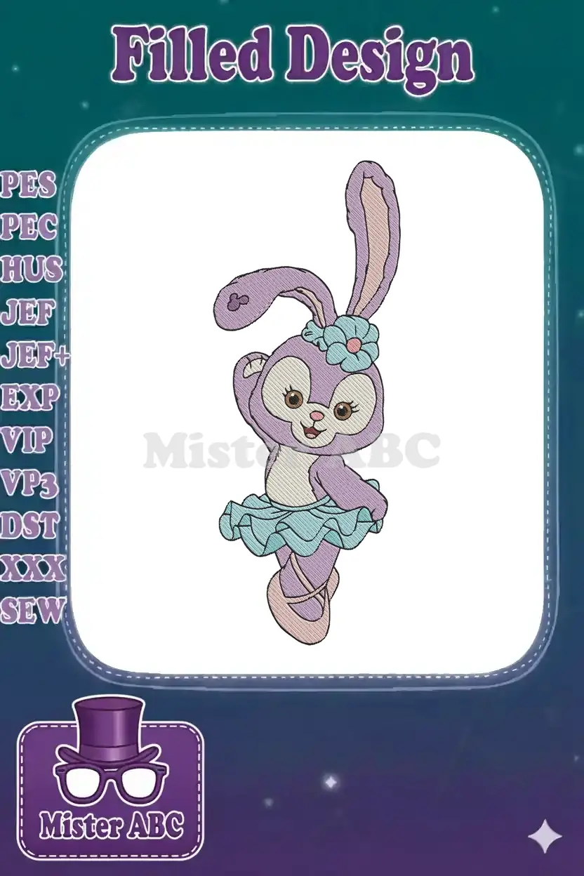 Cute StellaLou purple bunny ballerina embroidery designs with blue flower