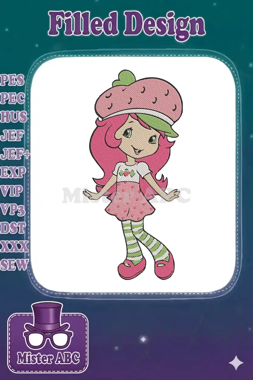 Cute Strawberry Shortcake girl with pink hair embroidery designs