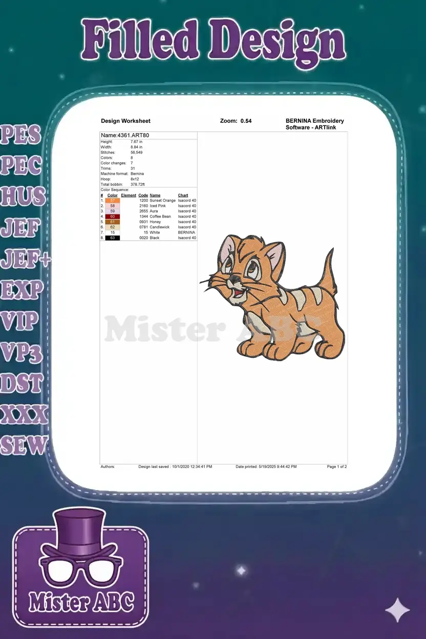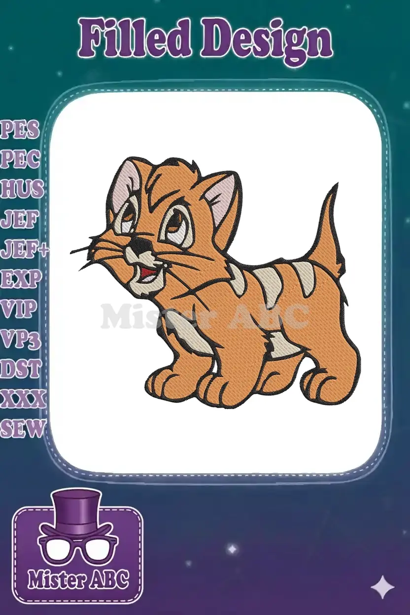 Cute striped orange cartoon kitten embroidery designs