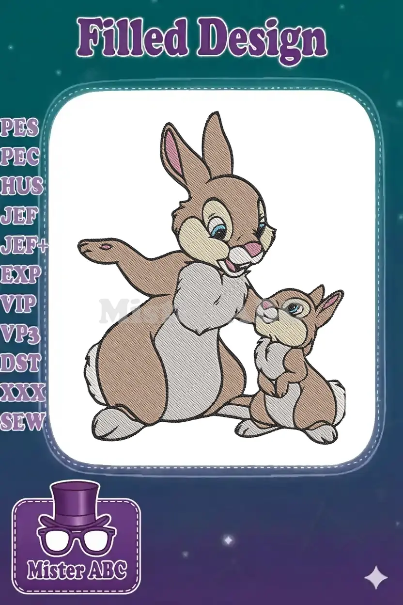 Cute Thumper and Baby Rabbit Family Embroidery Designs