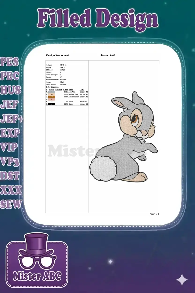 Cute Thumper rabbit character embroidery designs for Disney fans
