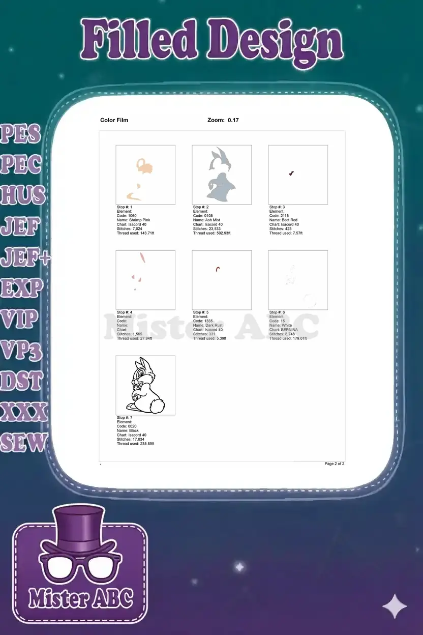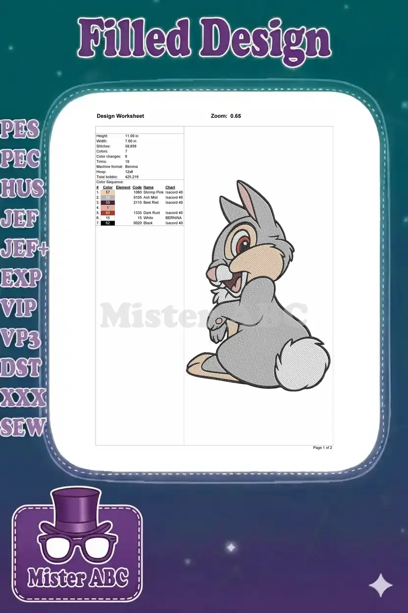 Cute Thumper the rabbit Disney cartoon embroidery designs