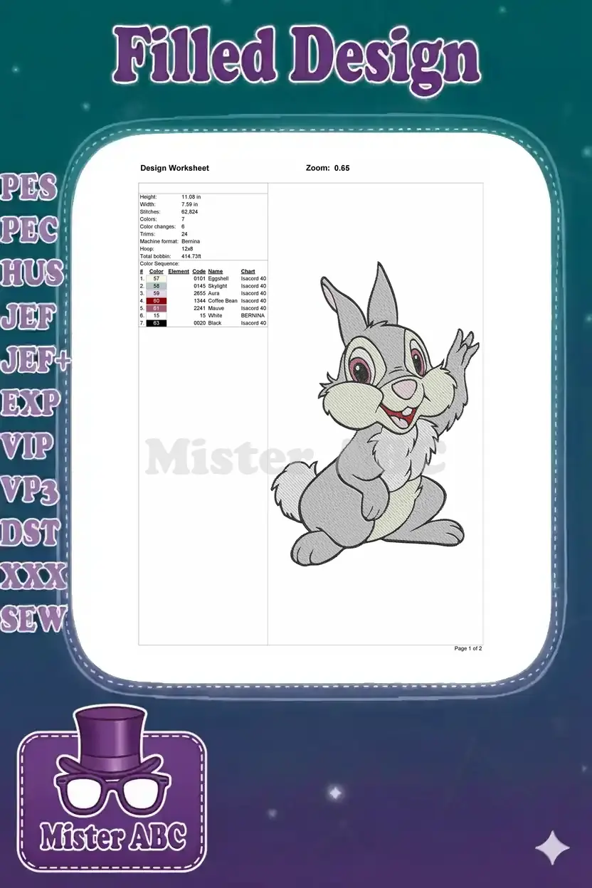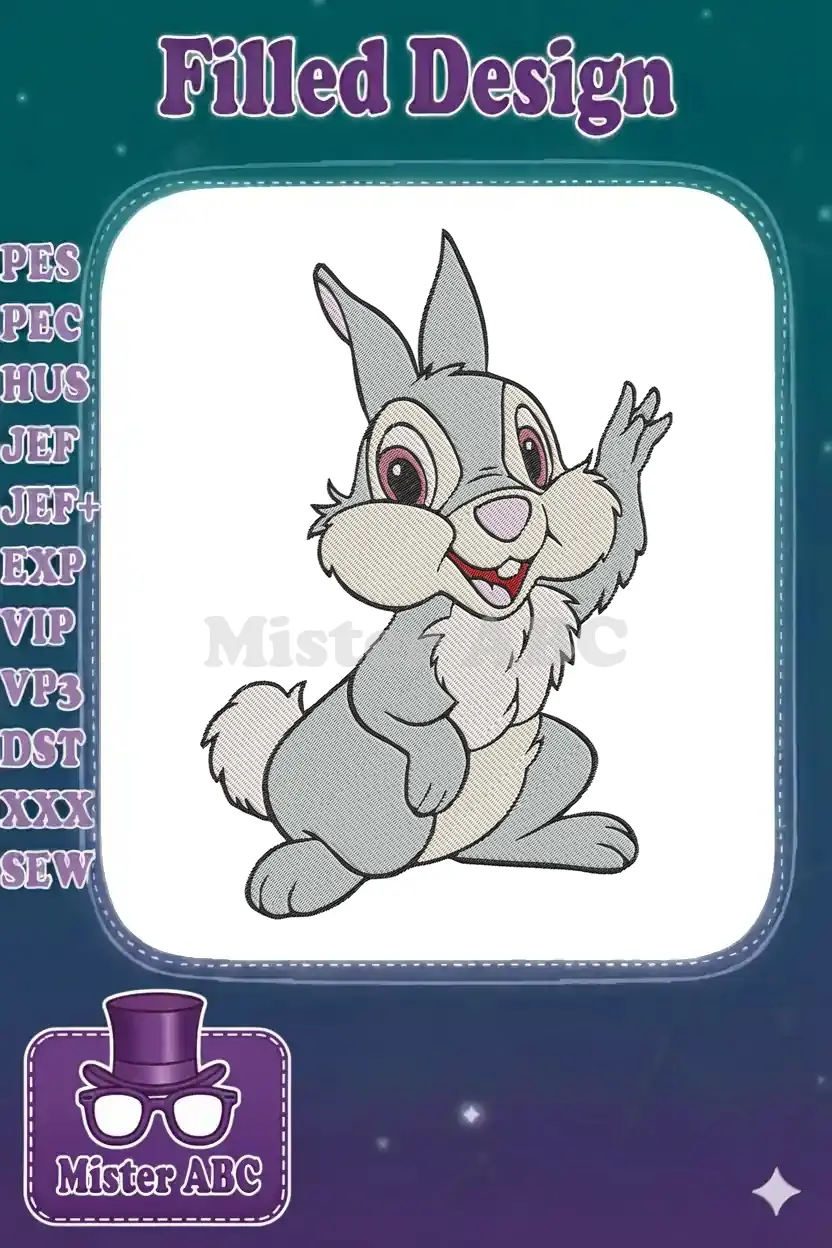 Cute Thumper Rabbit Waving Disney Cartoon Embroidery Designs