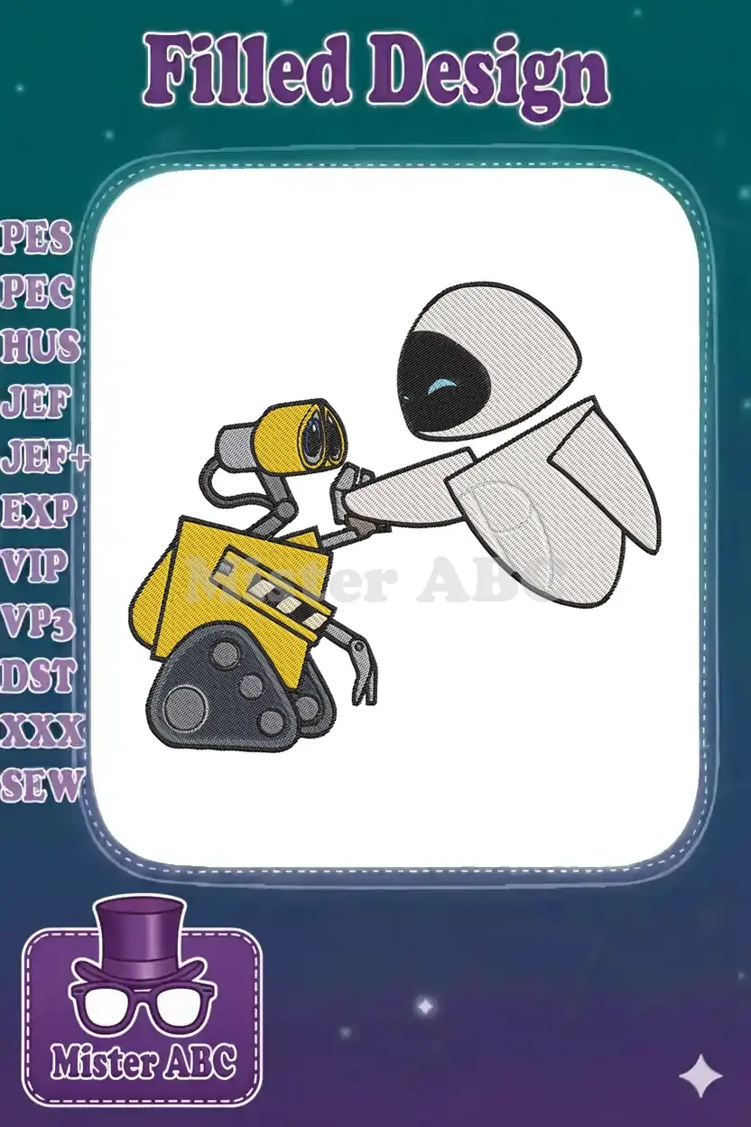 Cute WALL-E and EVE Robot Love Embroidery Designs