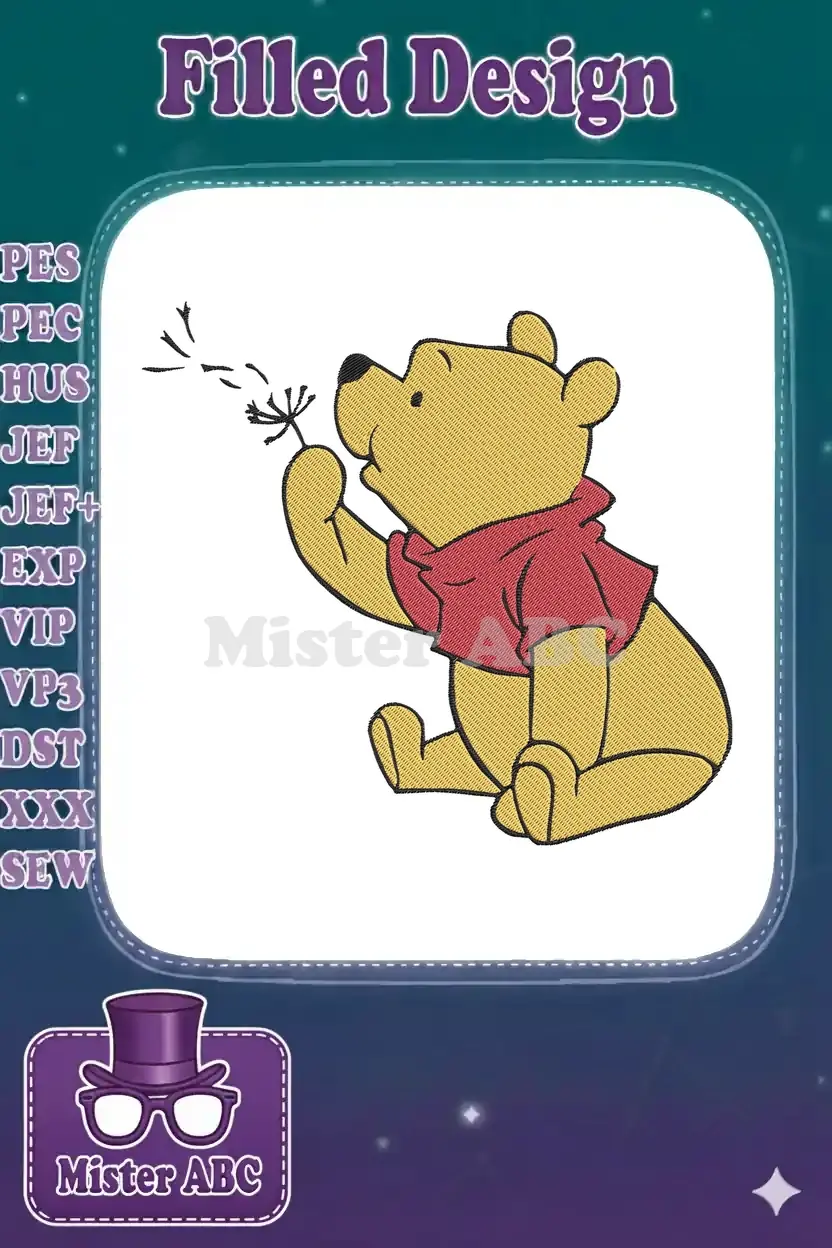 Cute Winnie the Pooh blowing dandelion flower embroidery designs