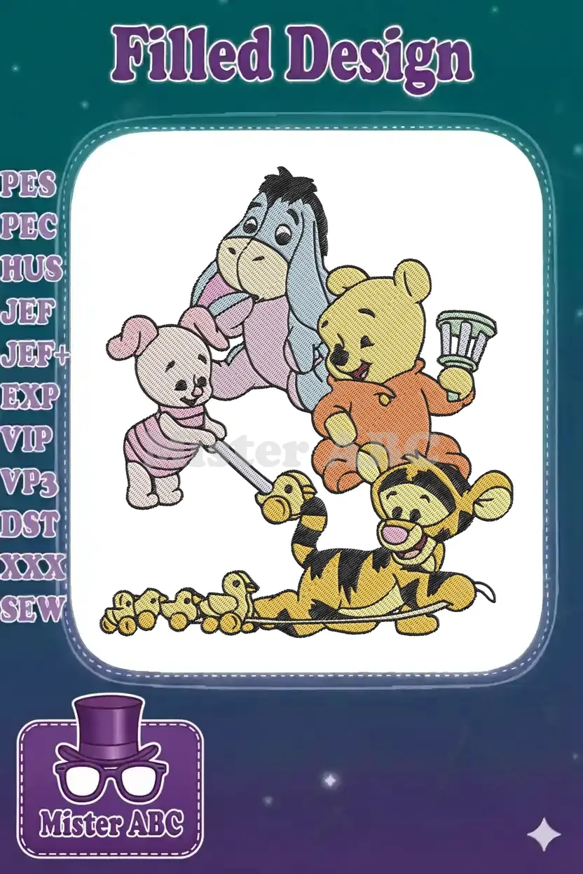 Cute Winnie the Pooh friends playing with toy embroidery designs