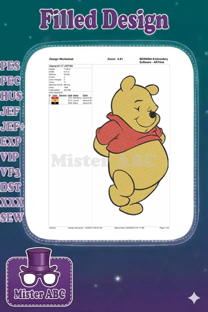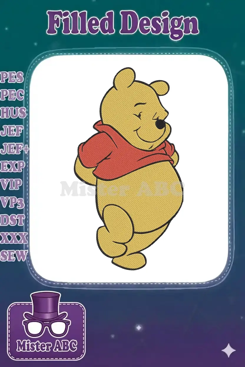 Cute Winnie the Pooh red shirt smiling bear embroidery designs
