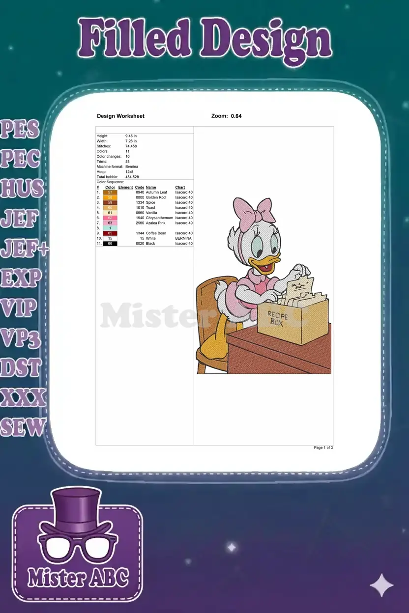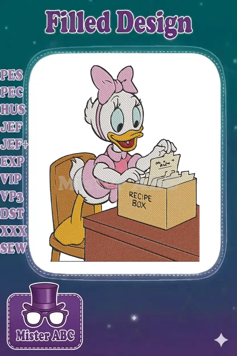 Daisy Duck searching recipe box embroidery designs for cooking enthusiasts