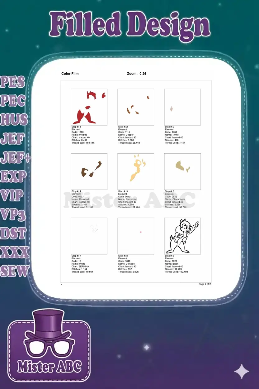 | Stitches | Colors | Thread Changes |