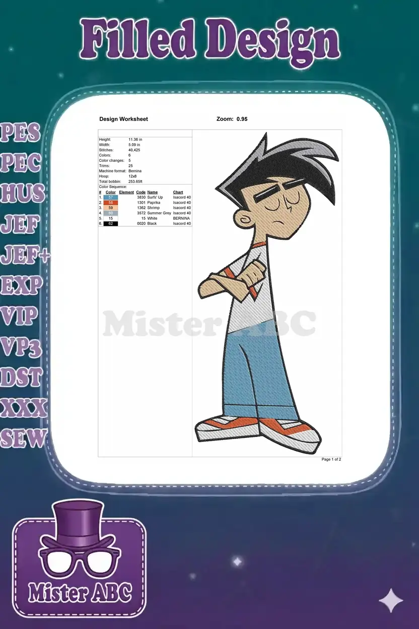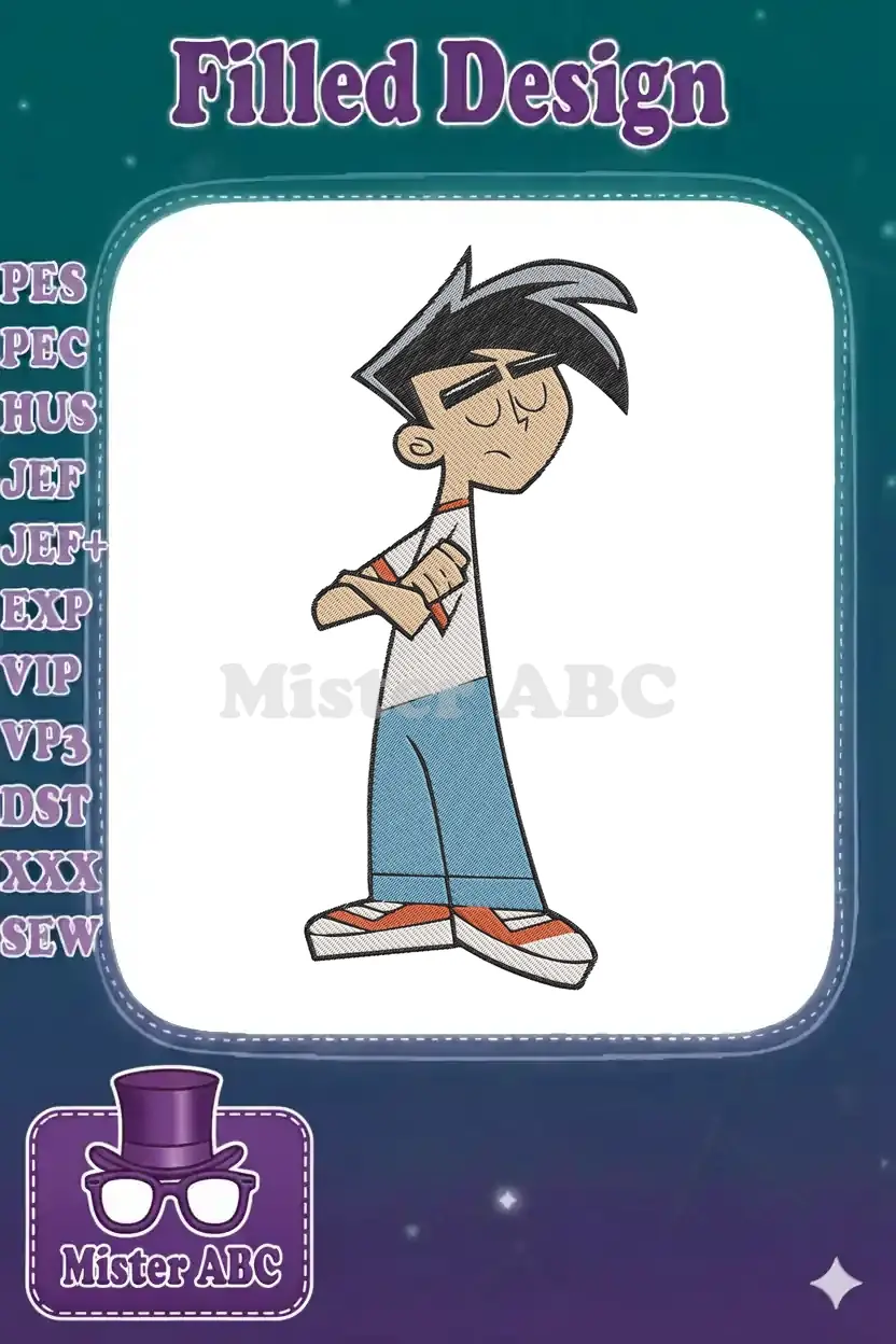 Danny Fenton serious pose Nickelodeon cartoon character embroidery designs