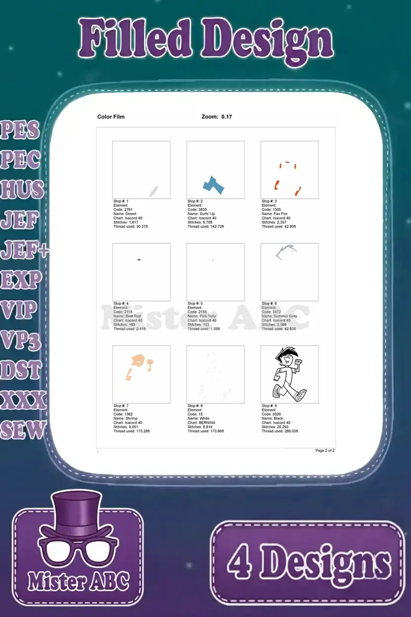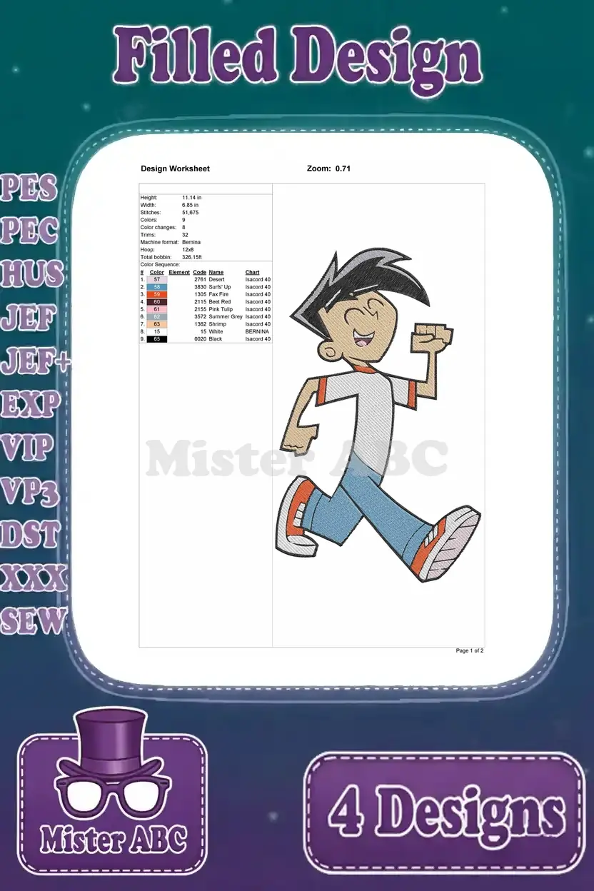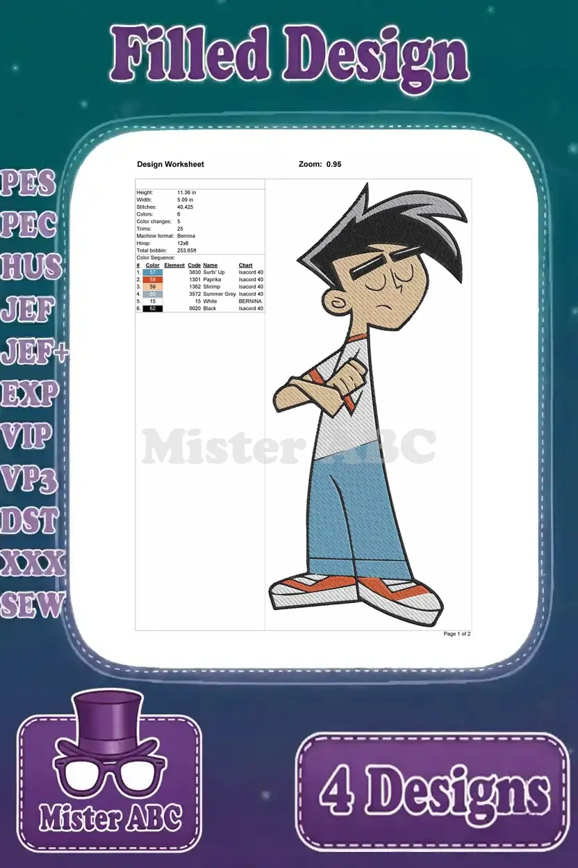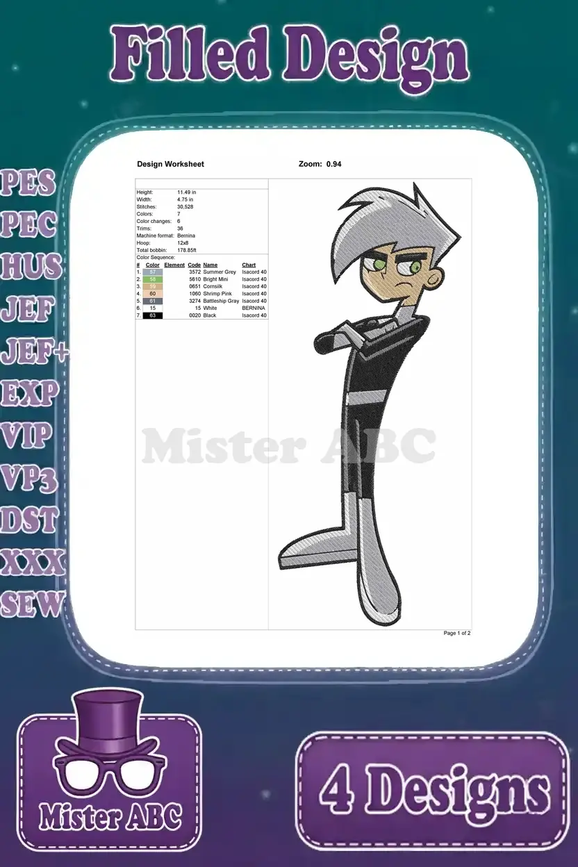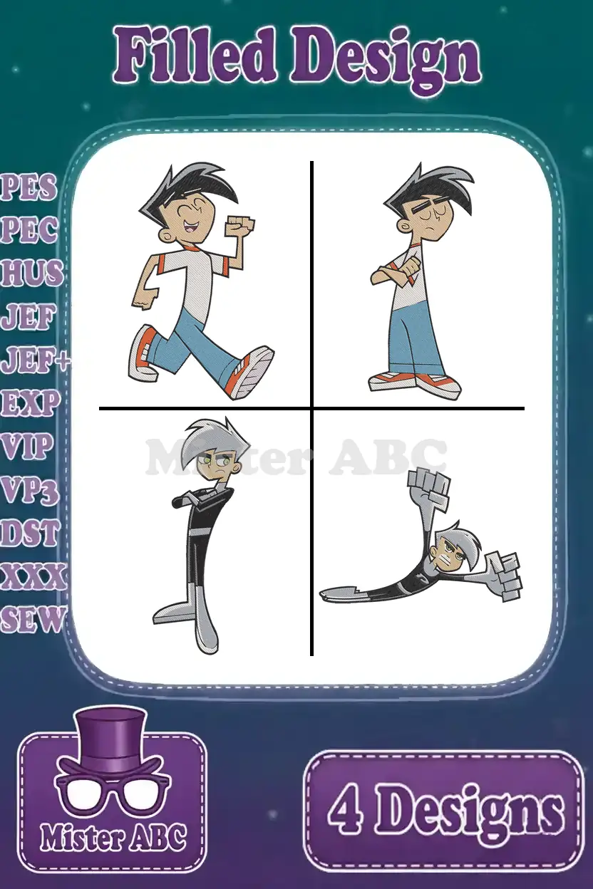 Embrace the supernatural with this dynamic Danny Phantom embroidery bundle! Four unique filled designs capture his heroic essence.