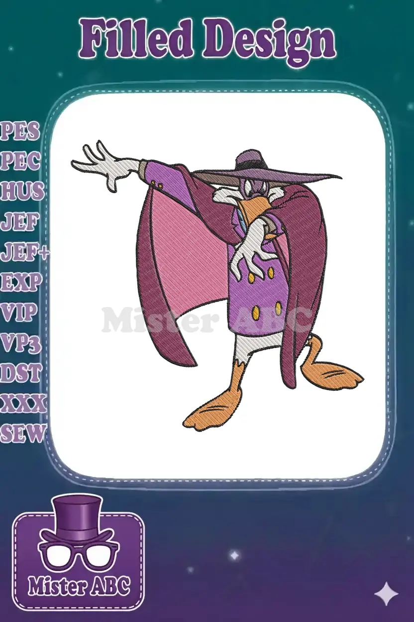 Darkwing Duck Cartoon Character Superhero Duck Embroidery Designs