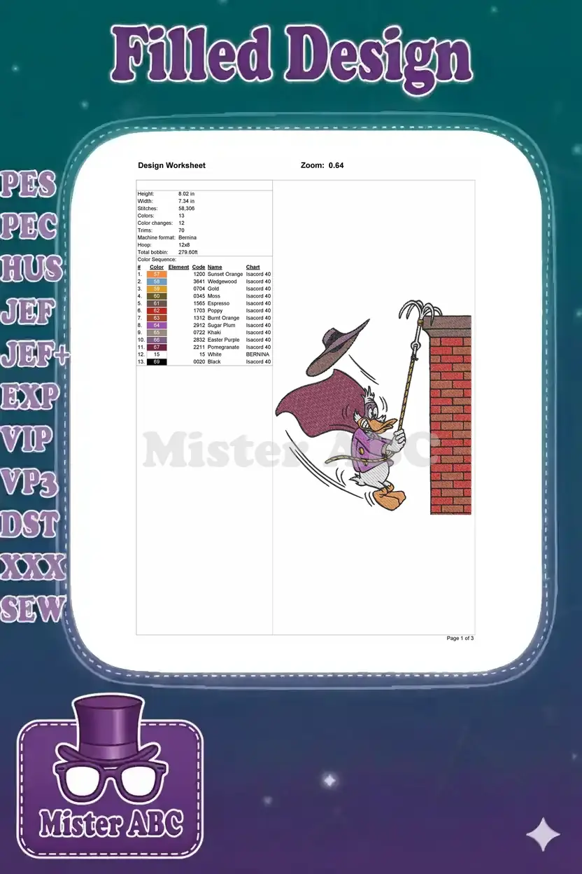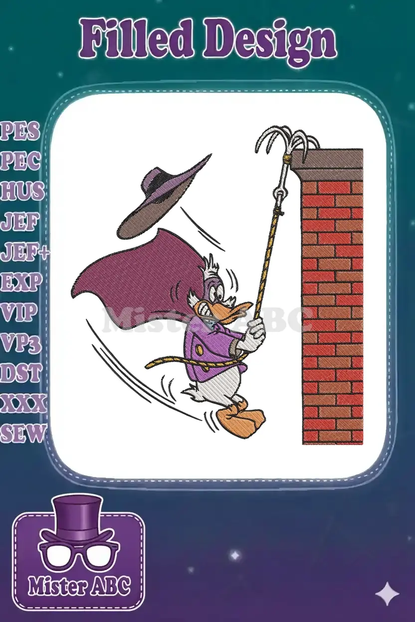 Darkwing Duck Climbing Wall with Grappling Hook Embroidery Designs