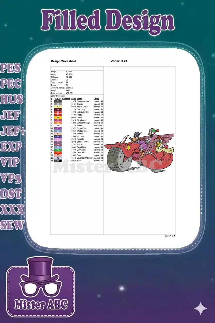 Darkwing Duck Launchpad Gosalyn flying Ratcatcher motorcycle embroidery designs