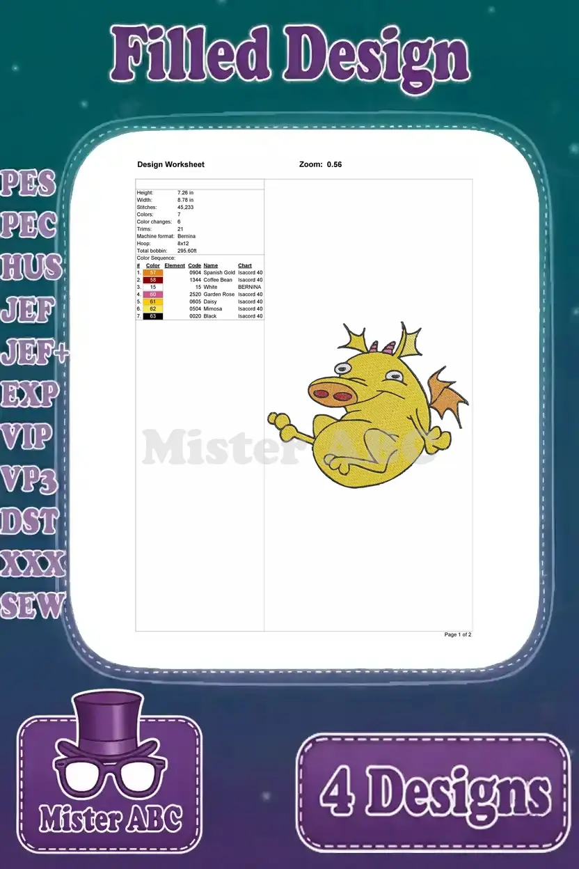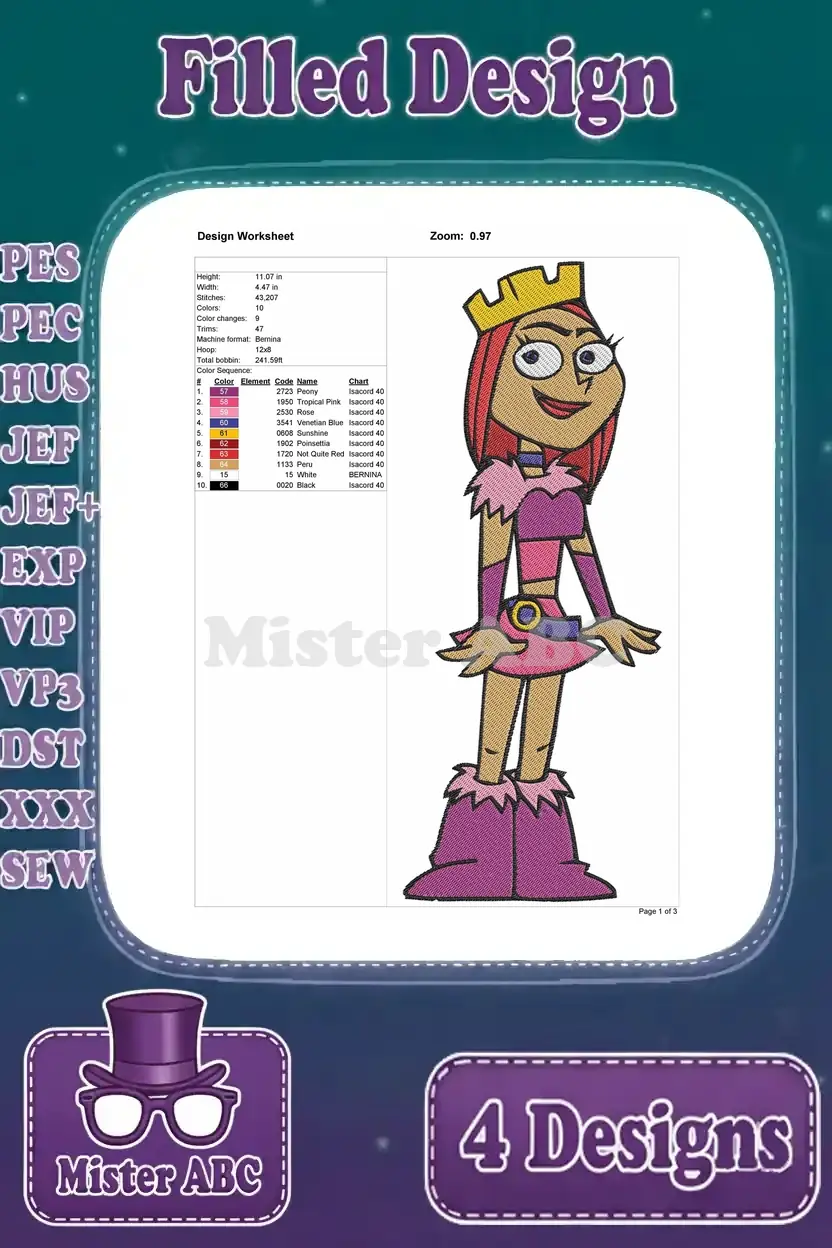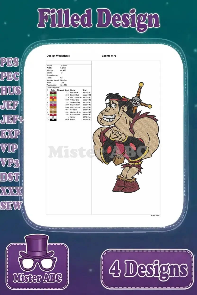 Dave The Barbarian Princess Candy Dave Oswidge Fang Dragon Coon Group Collection – Filled Embroidery Design