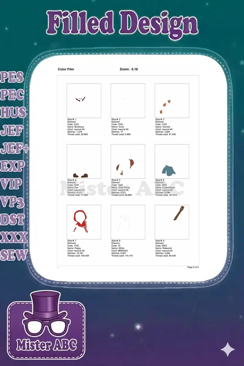 | Stitches | Colors | Thread Changes |