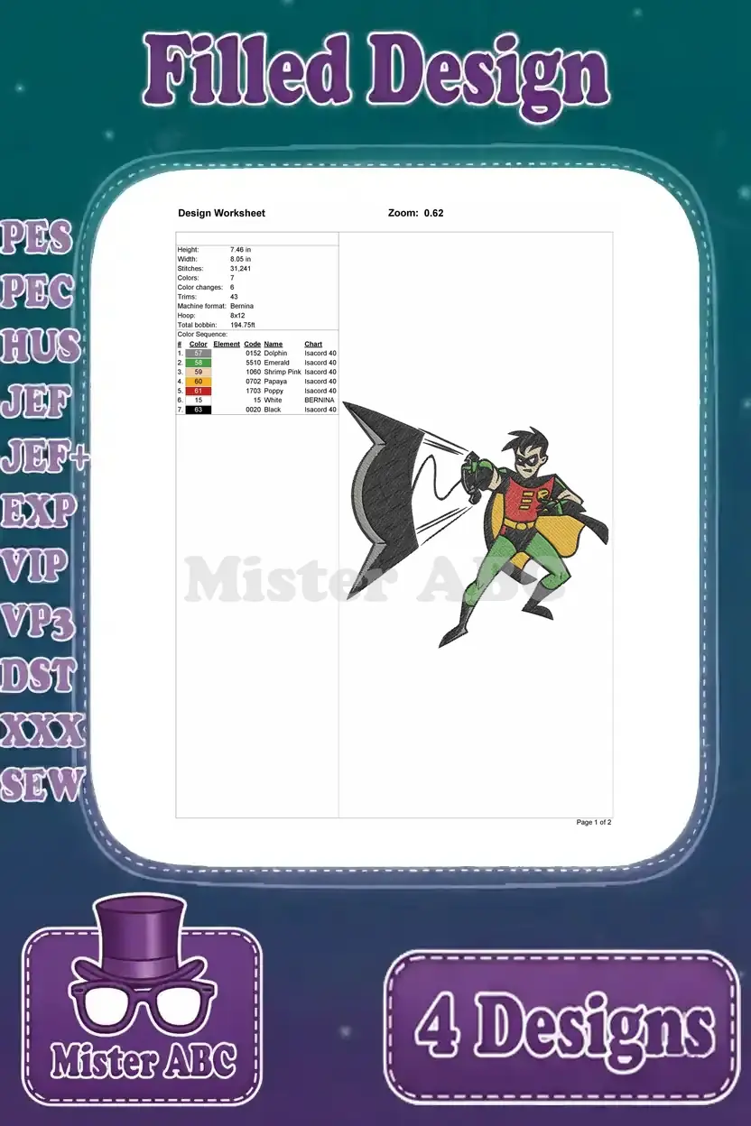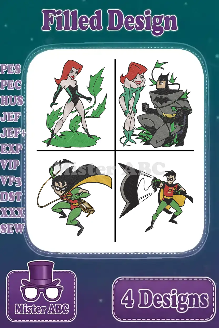 Dc Comics Batman Poison Ivy Robin The Boy Wonder Dynamic Duo Team Up Collection – Filled Embroidery Design