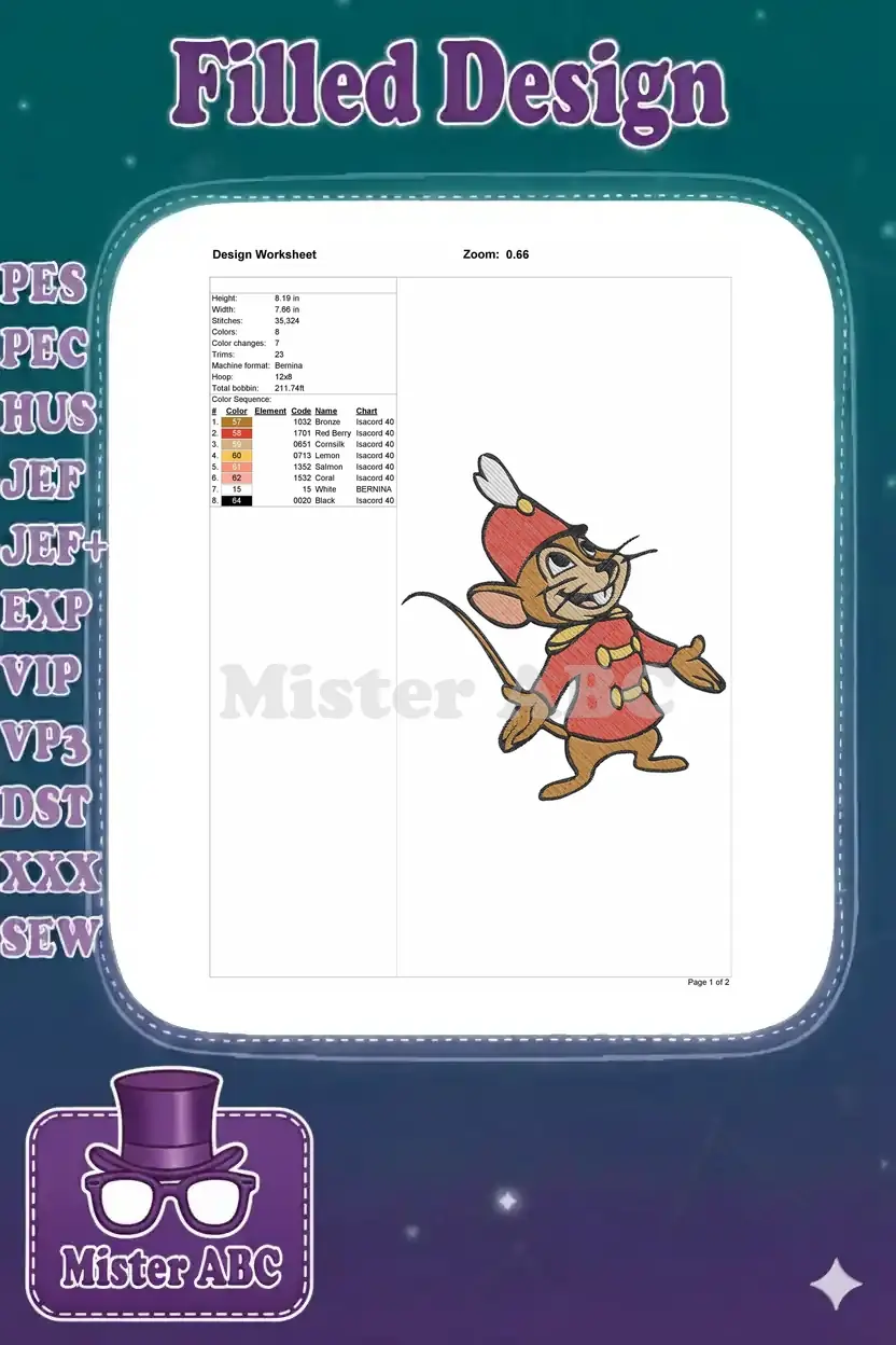 Delightful Disney Timothy Mouse ringmaster uniform embroidery designs - Instant Download Delightful Disney Timothy Mouse ringmaster uniform embroidery designs – Instant Download