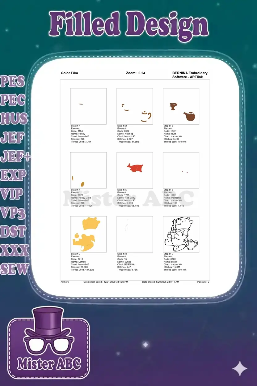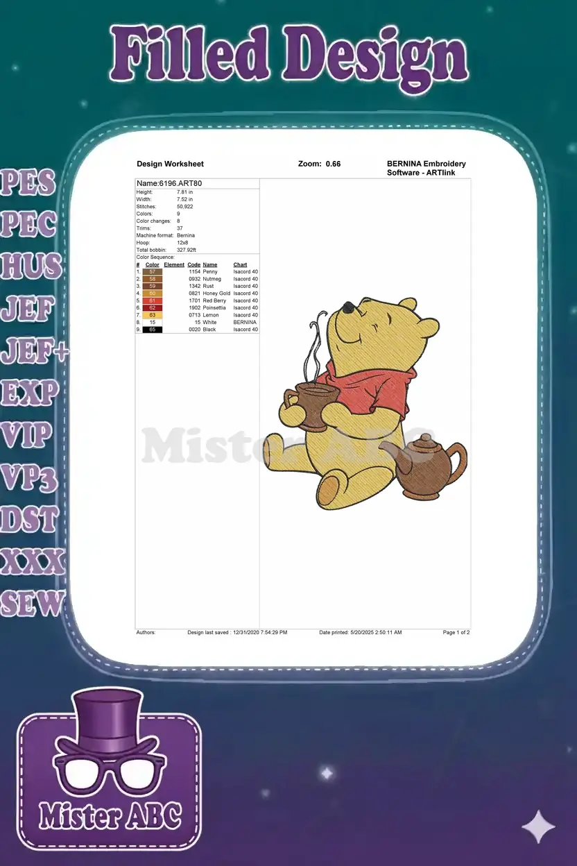 Delightful Winnie the Pooh with steaming tea embroidery designs