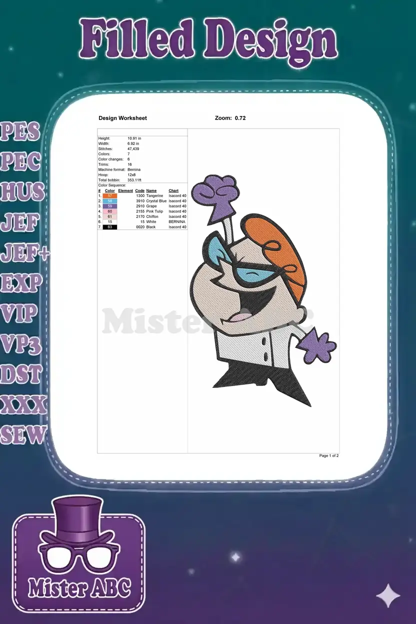 Unleash the genius with this vibrant Dexter’s Laboratory embroidery design. Perfect for fans to personalize items!