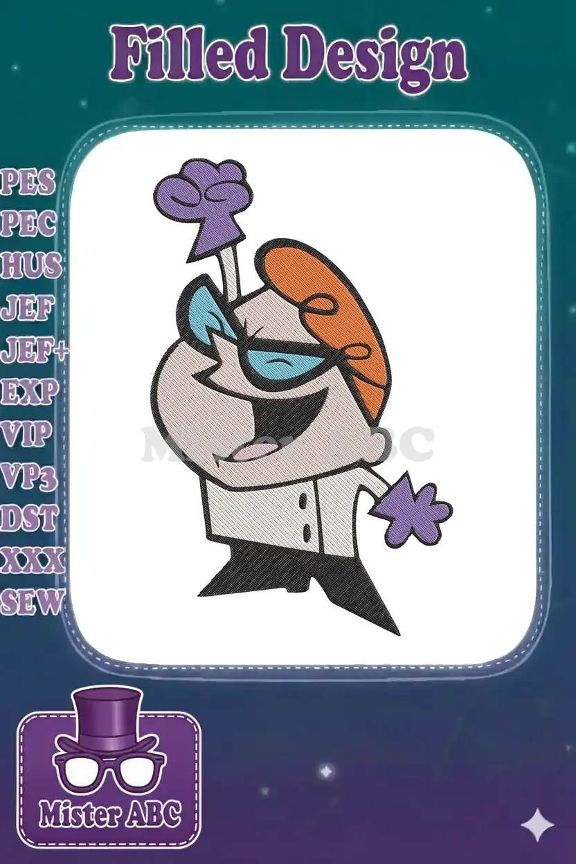 Dexter’s Laboratory Boy Genius Scientist Cartoon Embroidery Designs – Instant Download