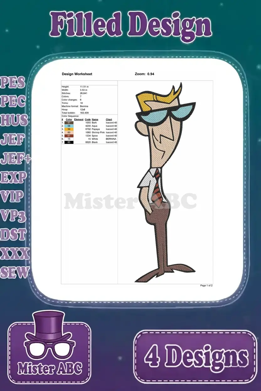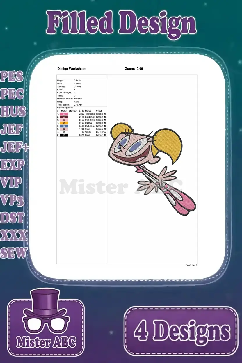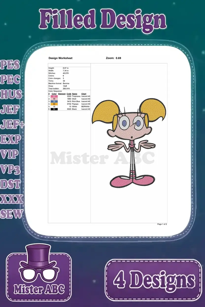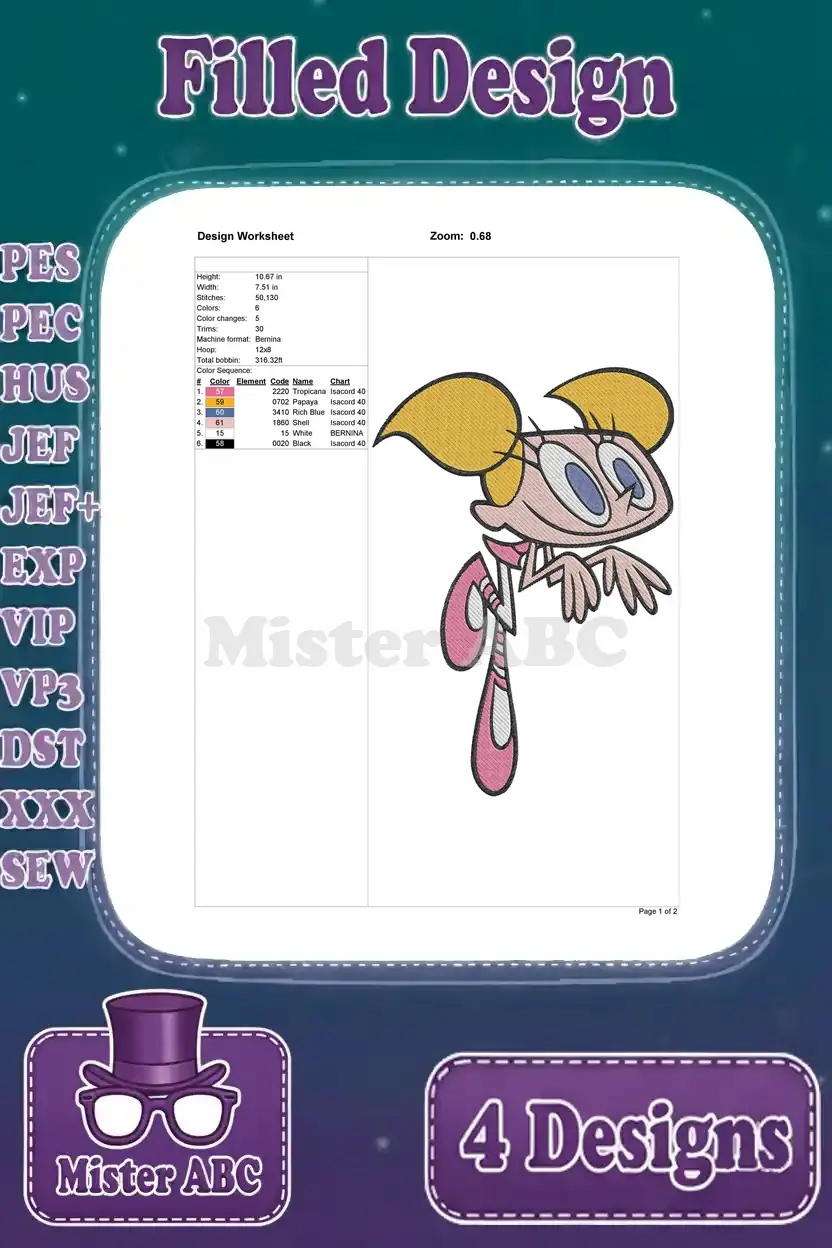 Dexters Laboratory Dexter Boy Genius Dee Dee Sister Playing Science Coon – Filled Embroidery Design