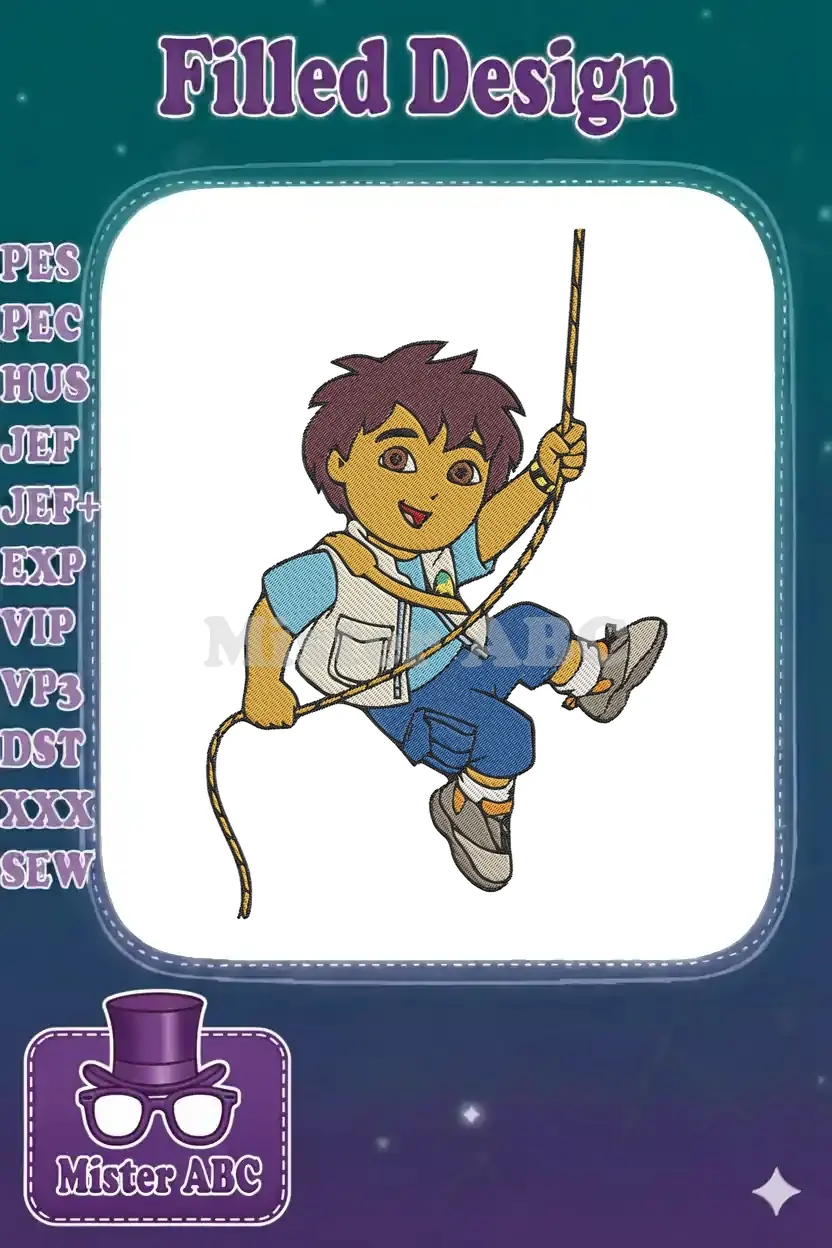 Diego Adventure Cartoon Character Rope Climbing Embroidery Designs