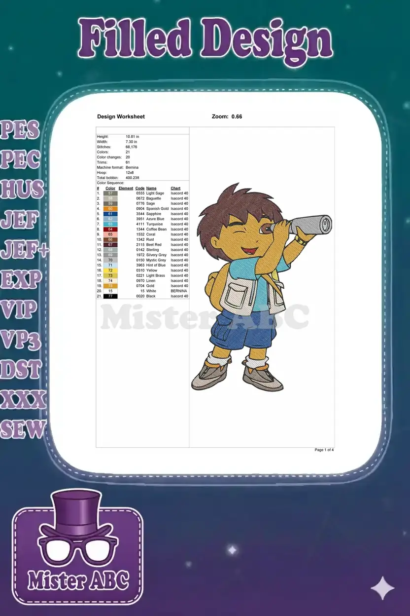 Diego the Explorer looking through telescope embroidery designs