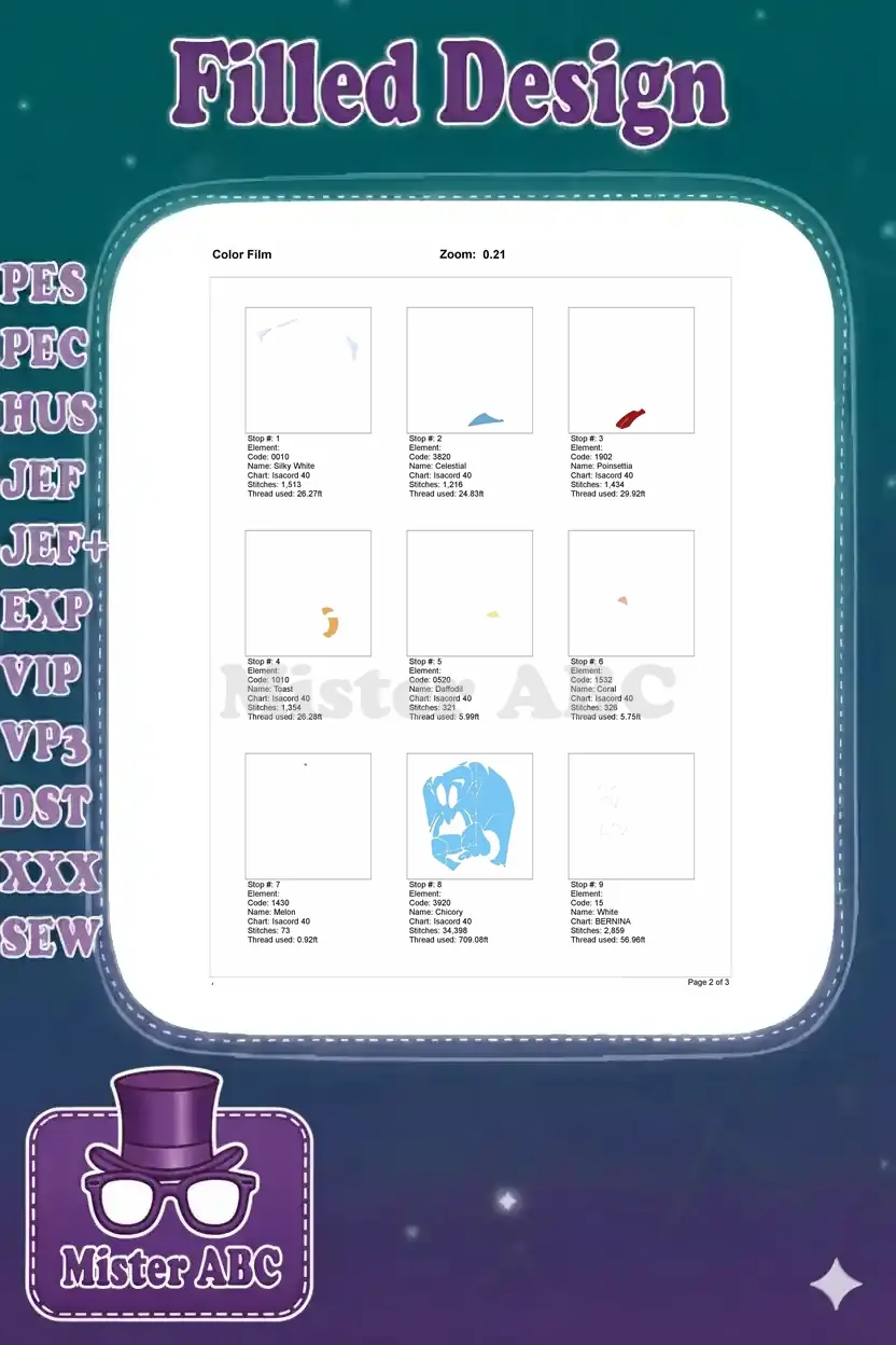 | Stitches | Colors | Thread Changes |
