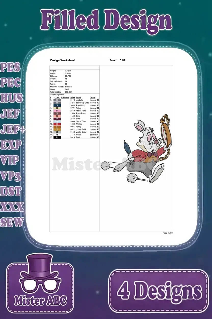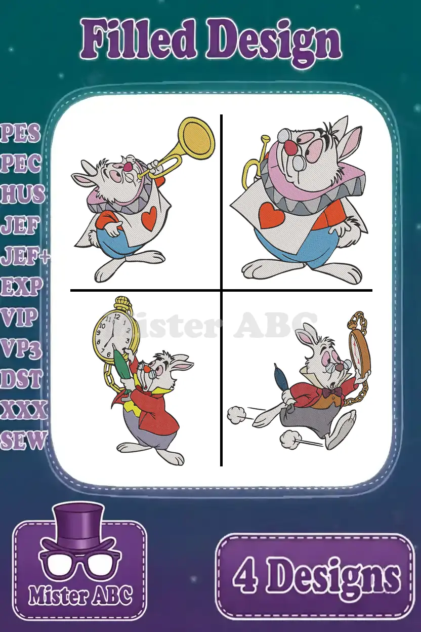 Disney Alice Wonderland White Rabbit Trumpet Watch Throne Stled Herald Set – Filled Embroidery Design