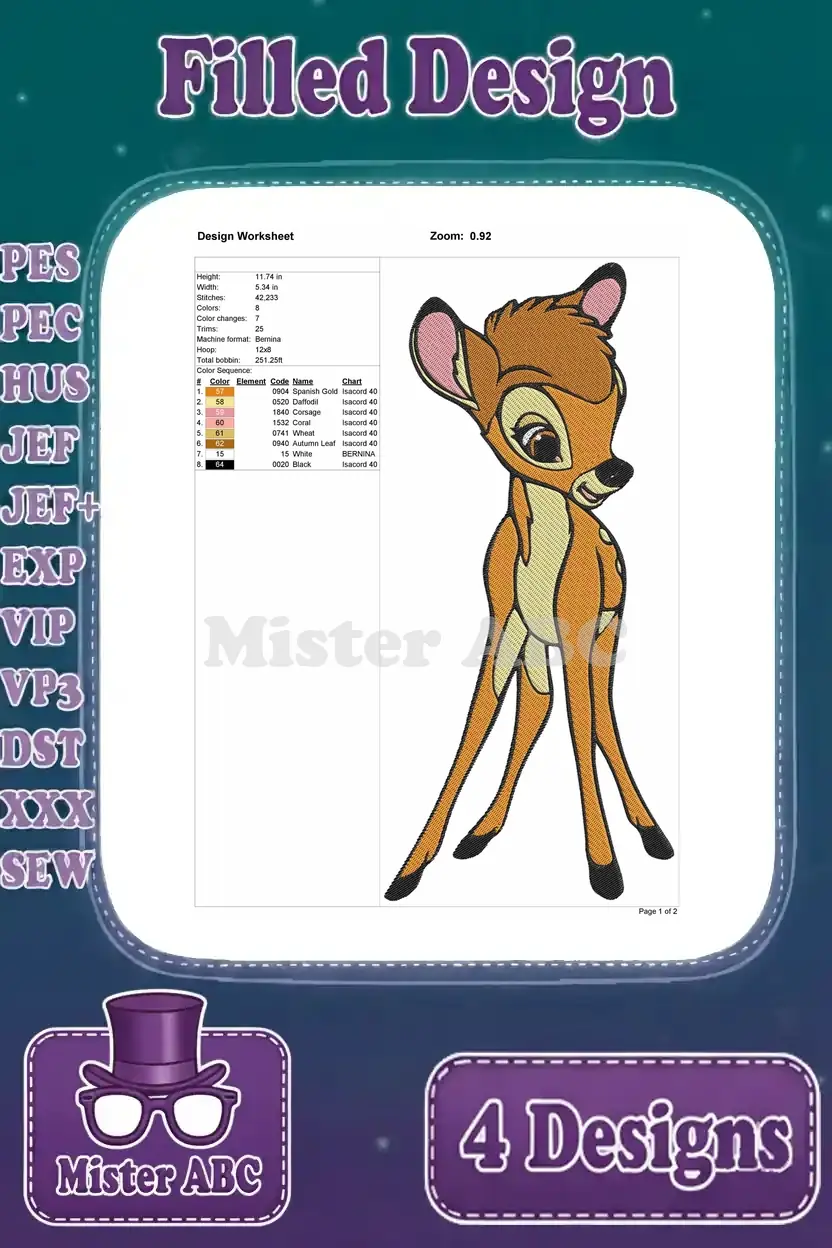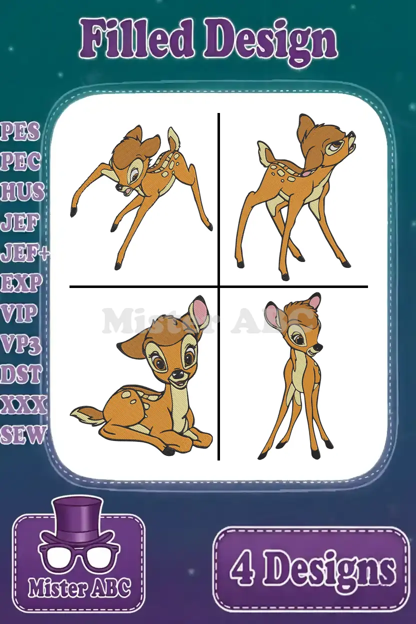 Disney Bambi Young Fawn Interacting Pair Lying Down Standing Deer Poses – Filled Embroidery Design