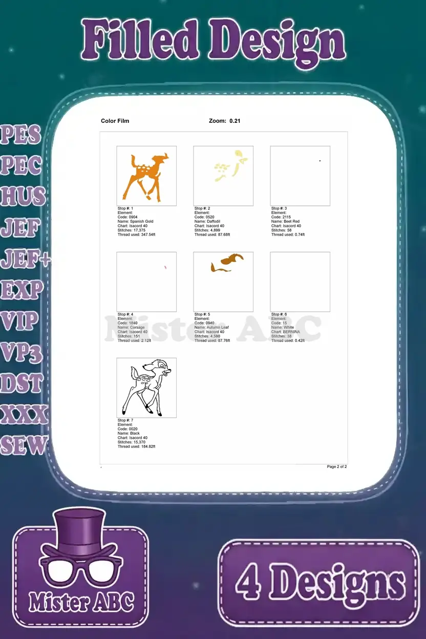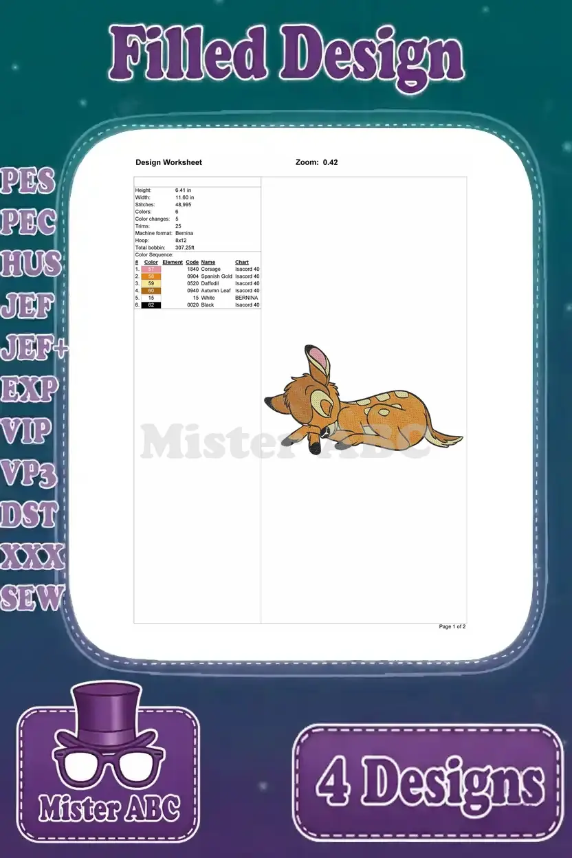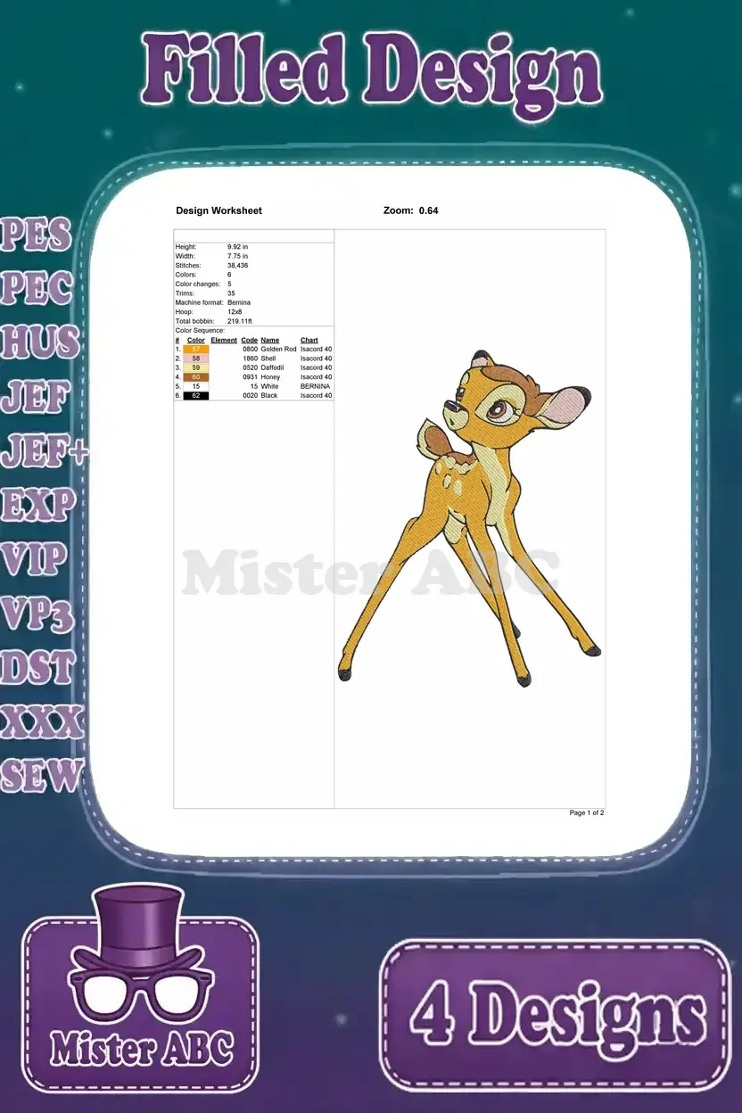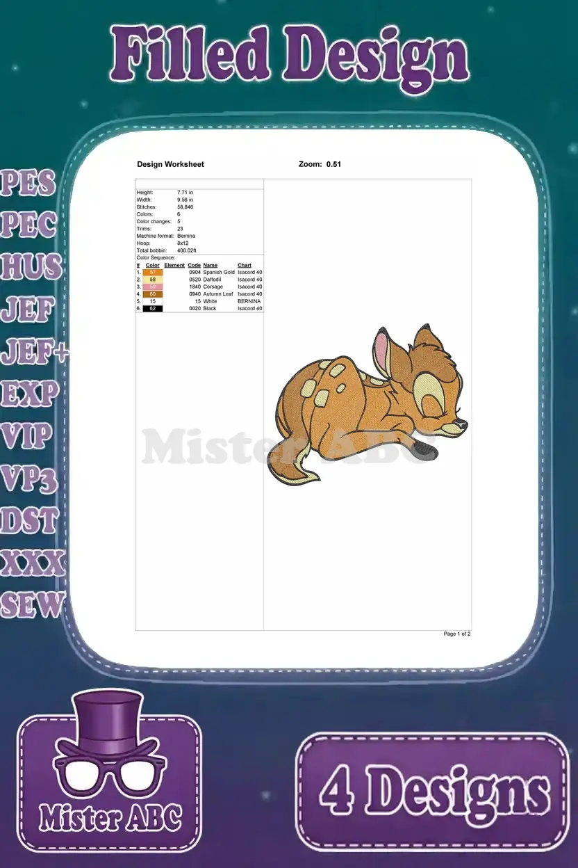 Disney Bambi Young Fawn And Mother Sleeping Resting Walking Deer Life Bundle – Filled Embroidery Design