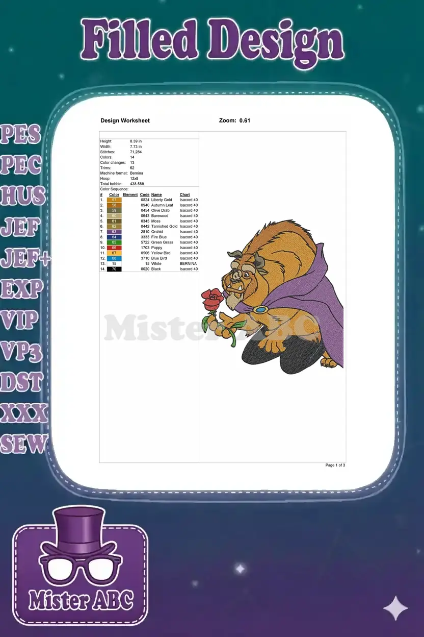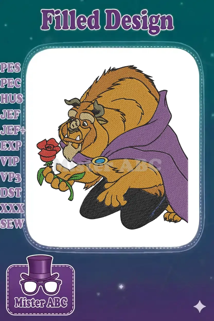Disney Beast with Enchanted Rose embroidery designs purple cape