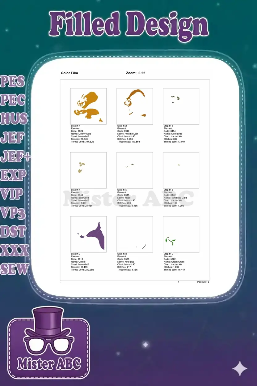 | Stitches | Colors | Thread Changes |
