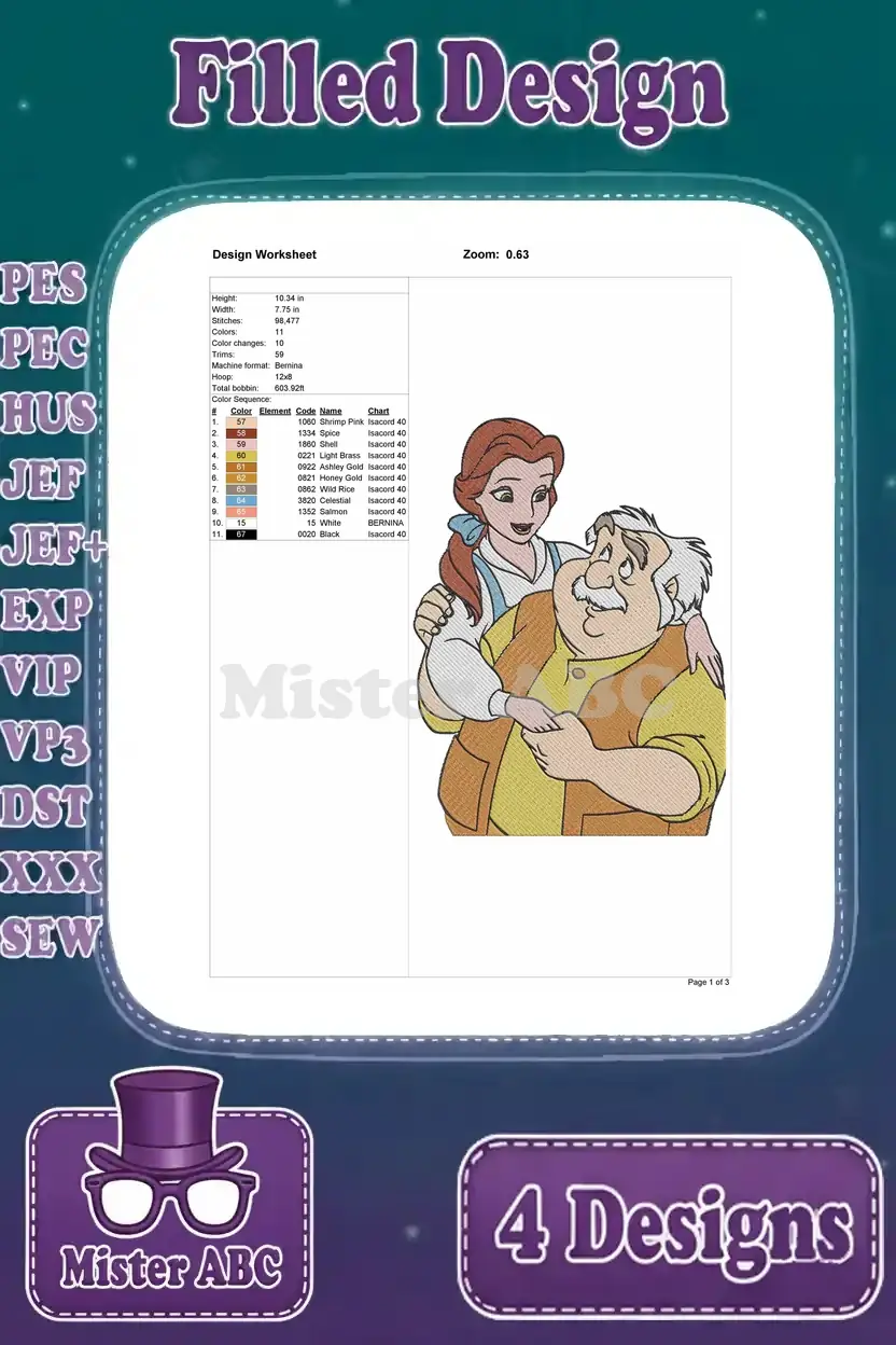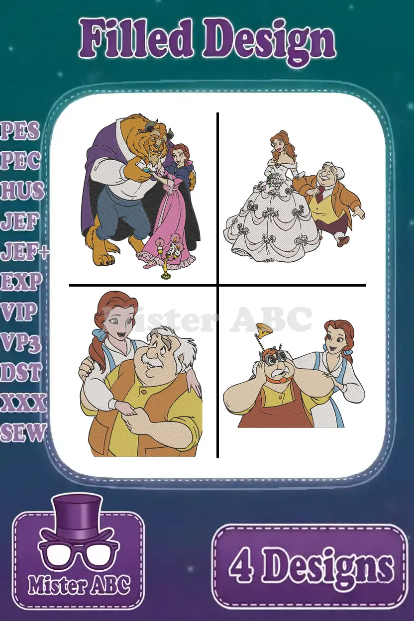 Disney Beauty Beast Belle Beast Maurice Mrs Potts Wedding Family Scenes Designs - Filled Embroidery Design - Instant Download Disney Beauty Beast Belle Beast Maurice Mrs Potts Wedding Family Scenes Designs – Filled Embroidery Design – Instant Download