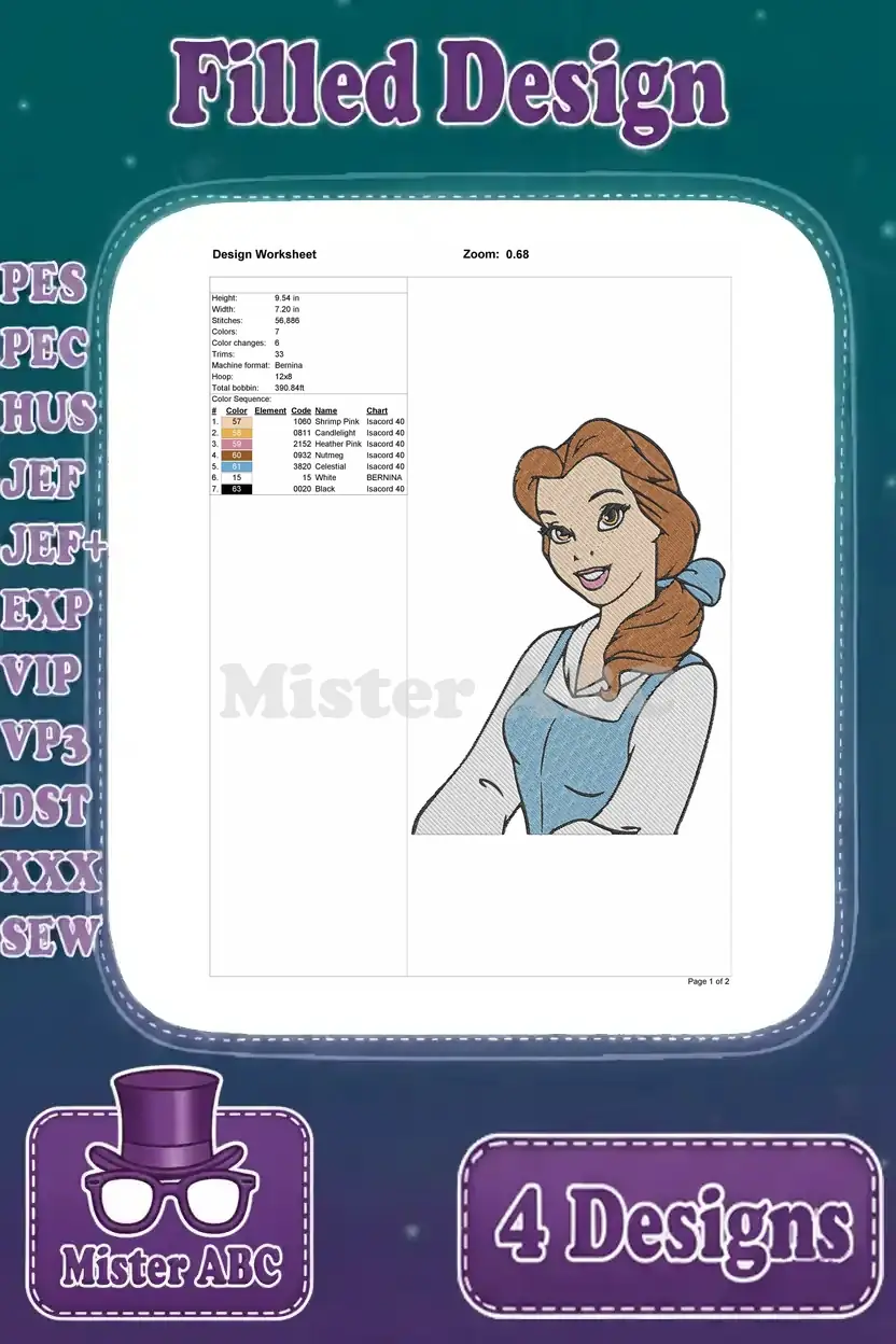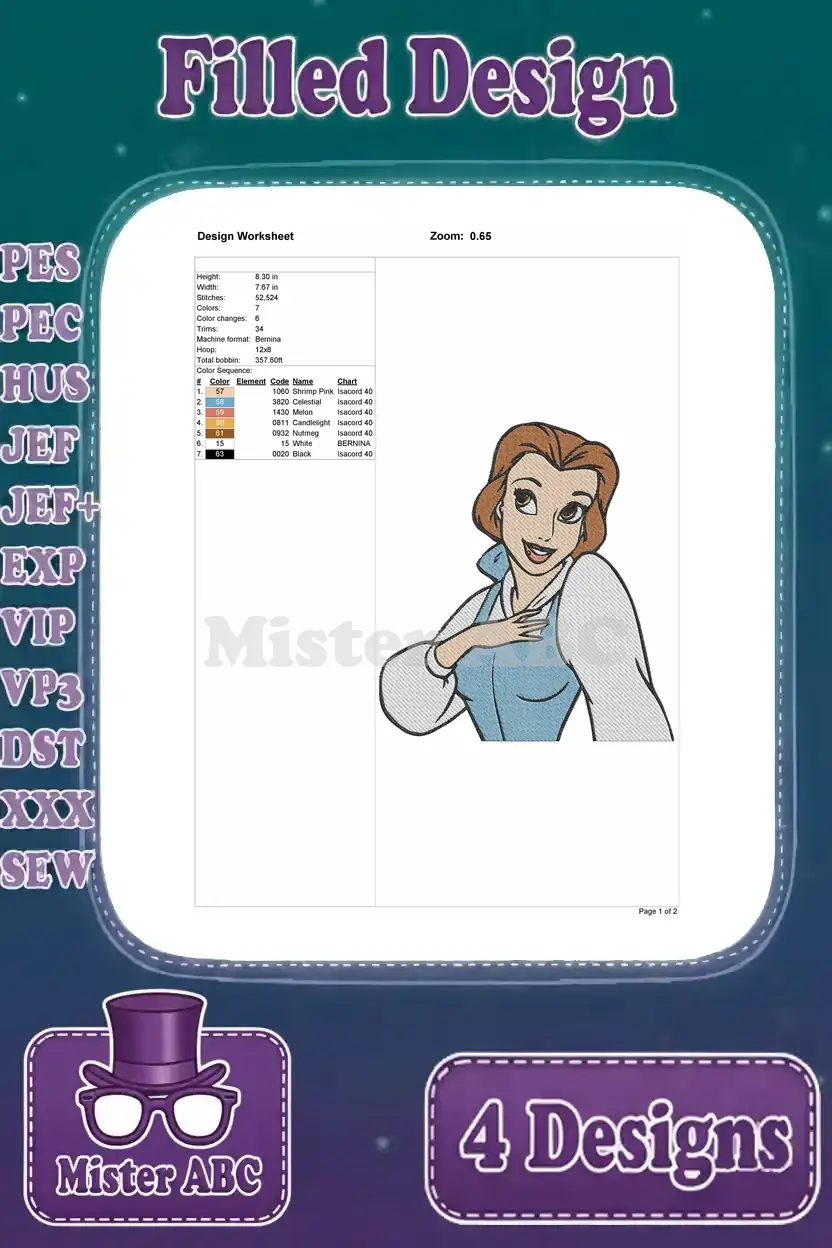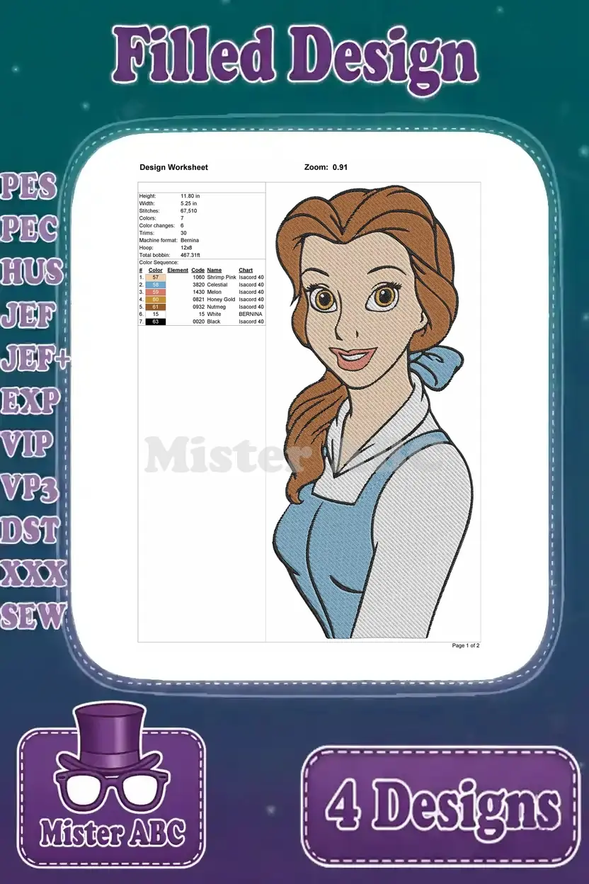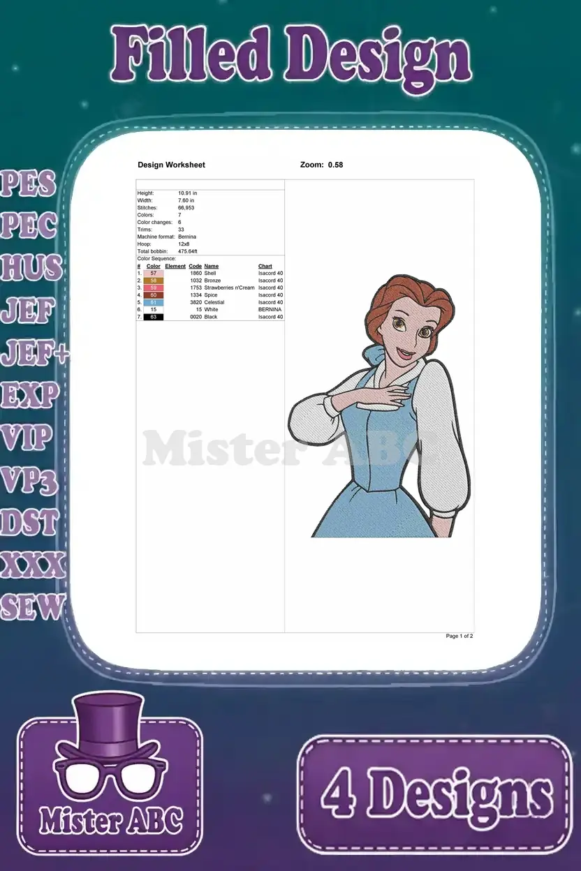 Disney Beauty Beast Belle Blue Ballgown Pink Dress Winter Cloak Various Outfits Collection – Filled Embroidery Design
