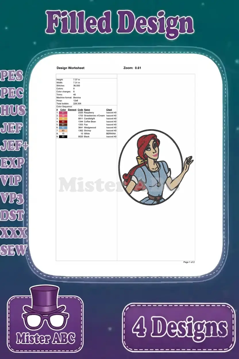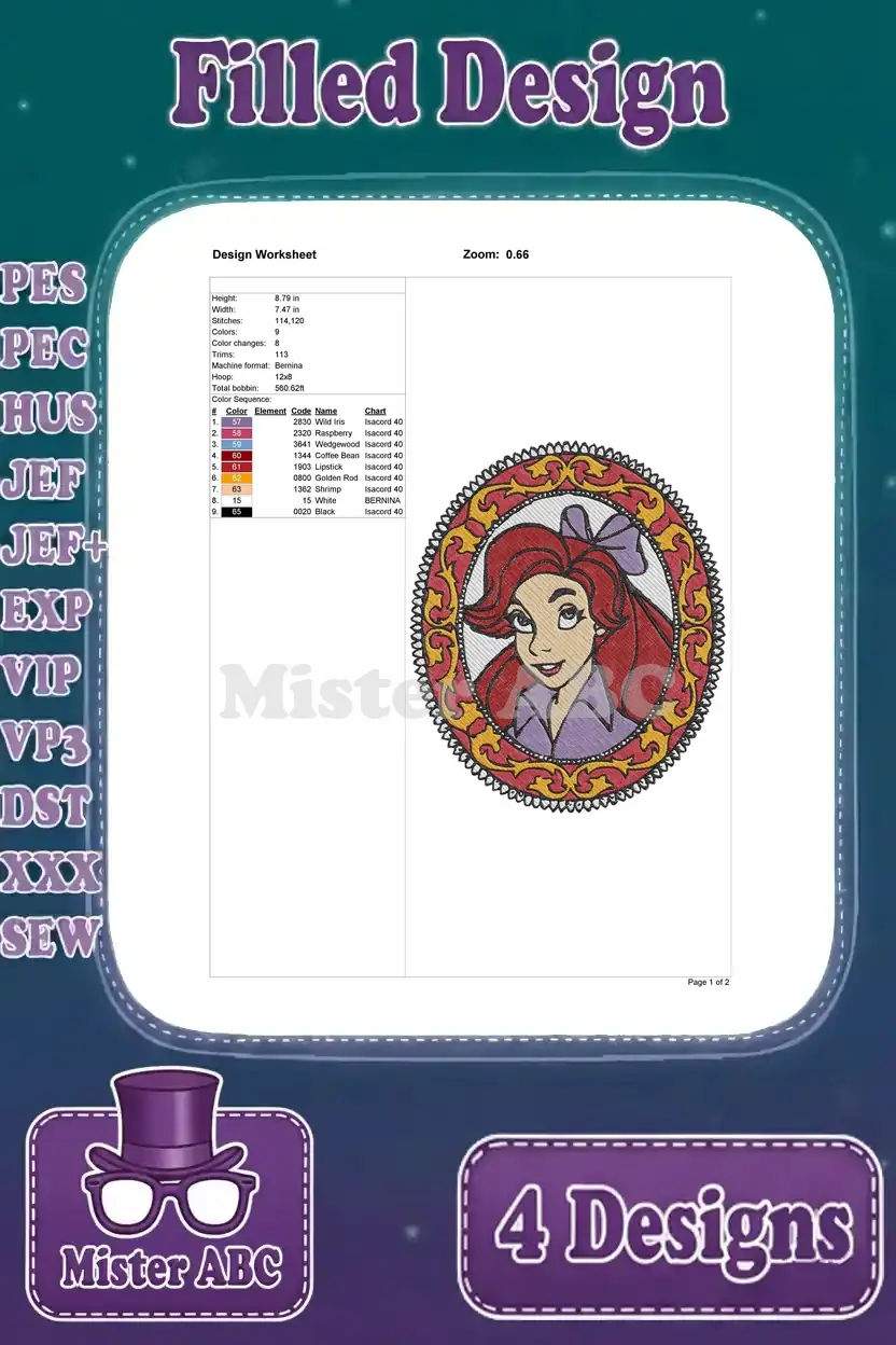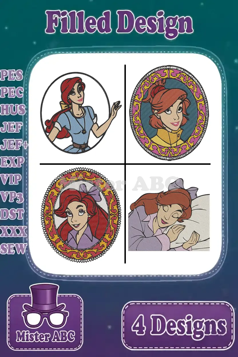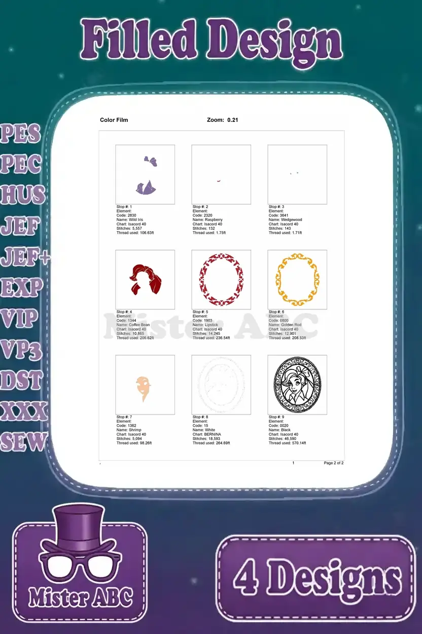 Disney Beauty Beast Belle Portraits Oval Frames Sleeping Reading Princess – Filled Embroidery Design