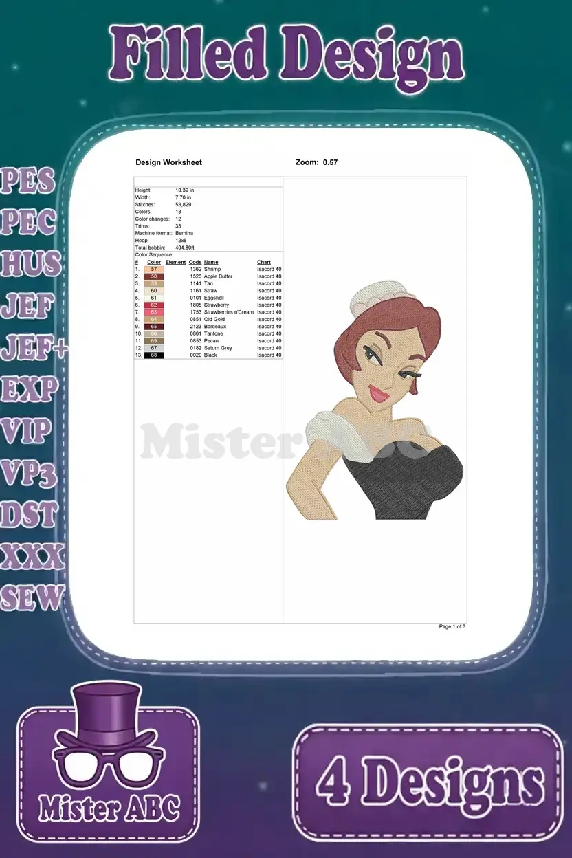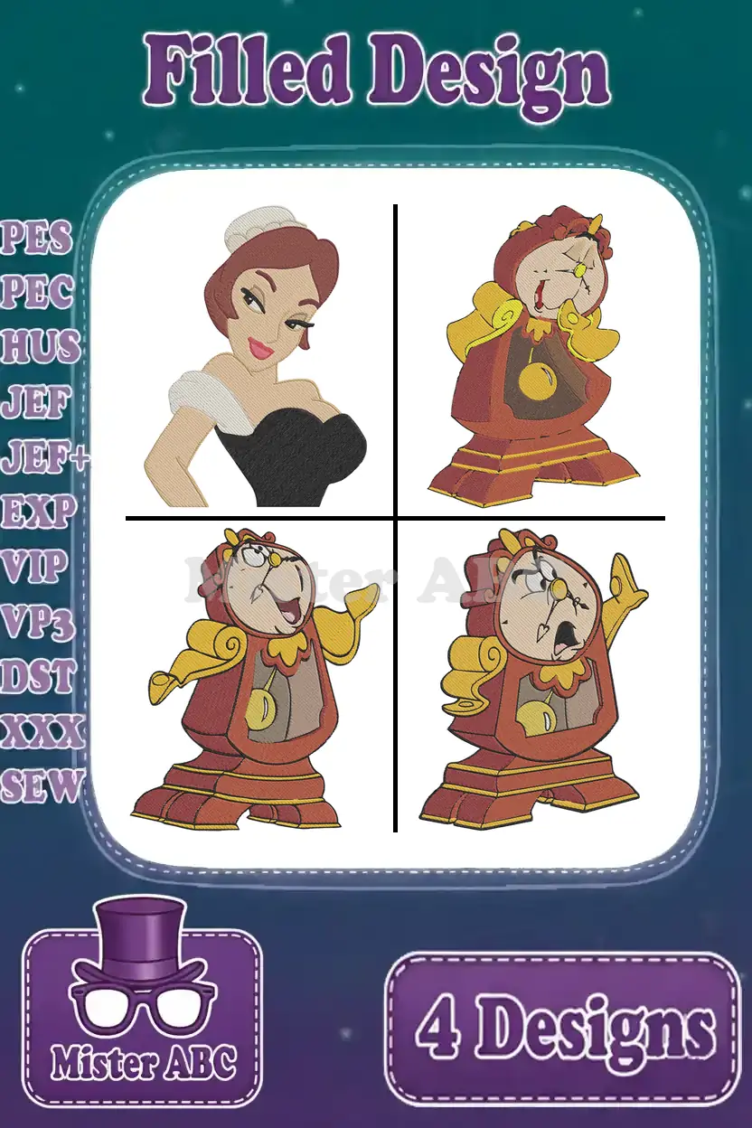 Disney Beauty Beast Cogsworth Clock Character Various Expressive Poses Pointing Collection – Filled Embroidery Design