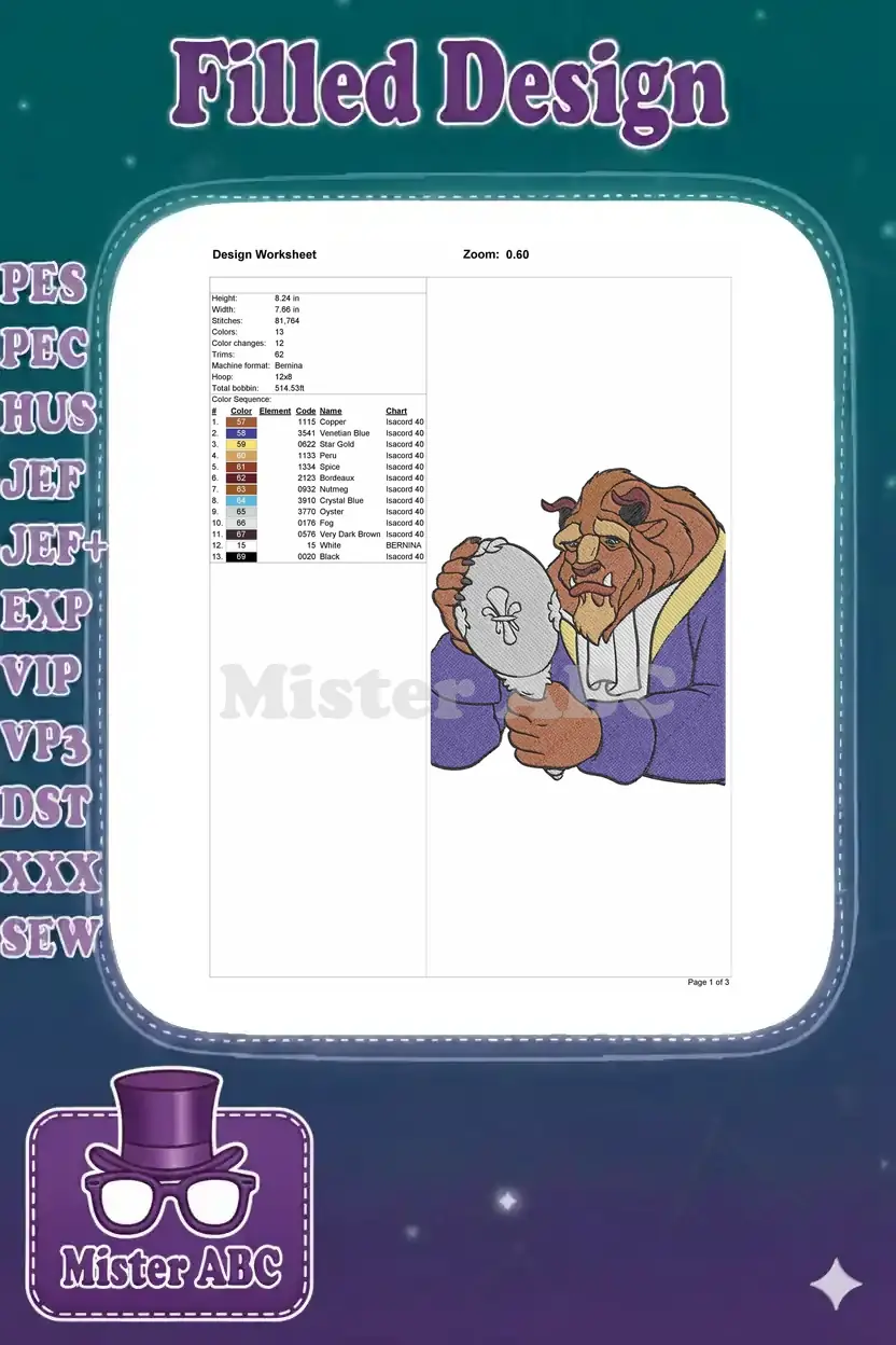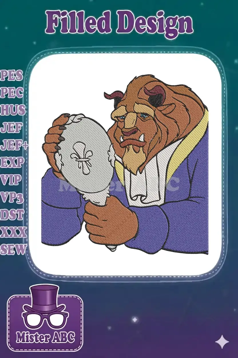 Disney Beauty and the Beast looking into magic mirror embroidery designs