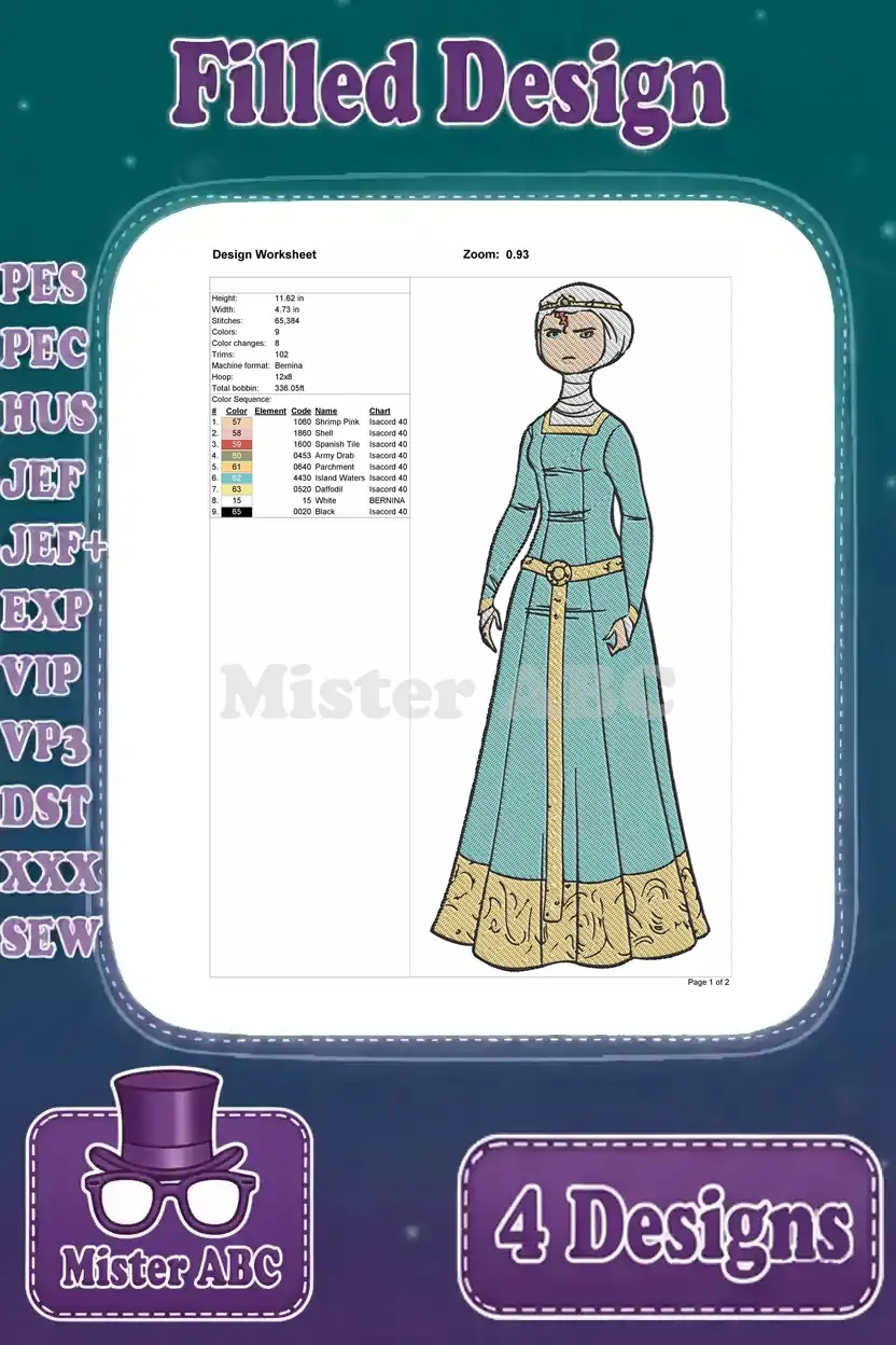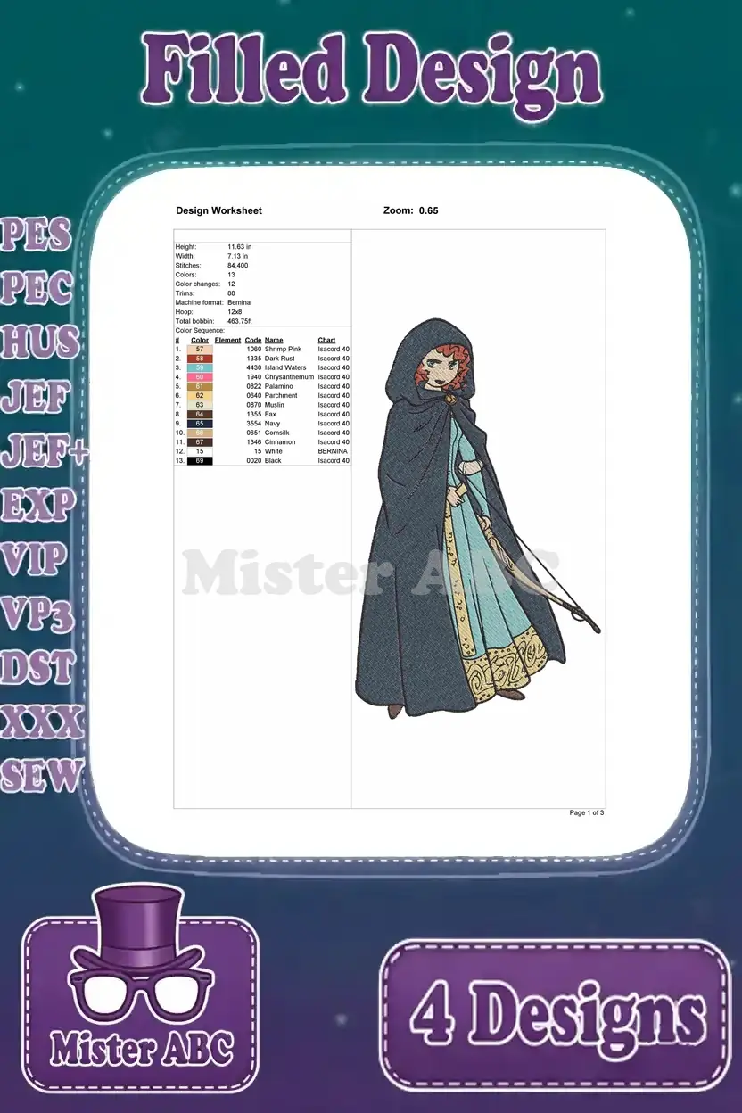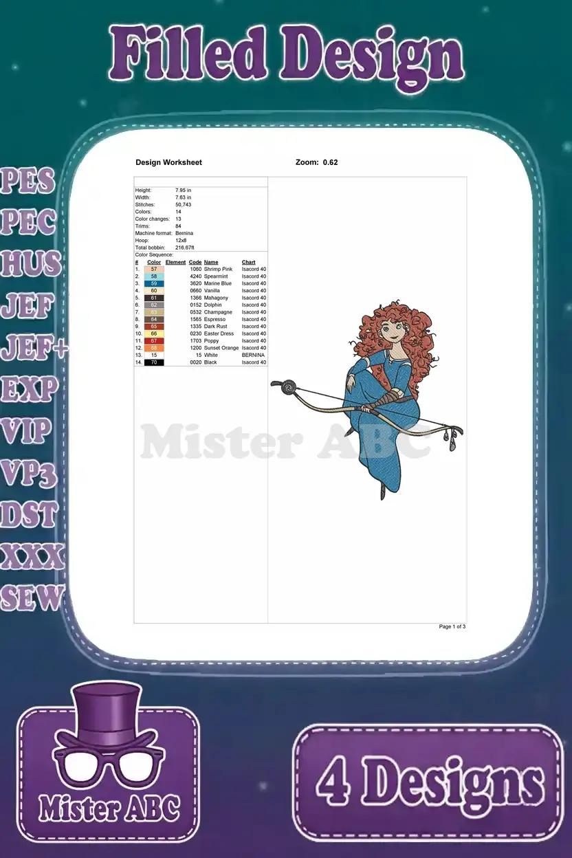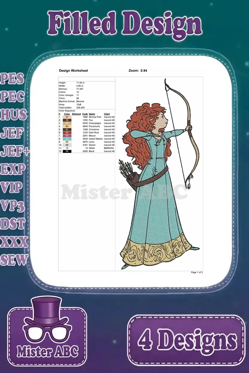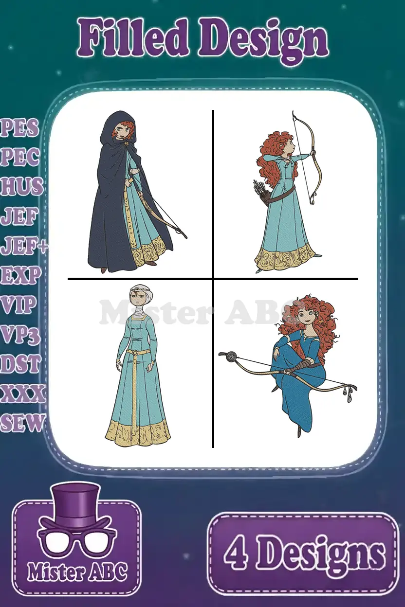 Disney Brave Merida Archer Princess Queen Elinor Elegant Mother Scottish Royalty Bundle – Filled Embroidery Design