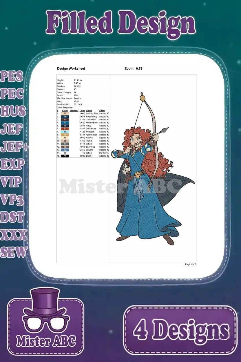 Disney Brave Merida Princess With Bow And Arrow Action Poses Fiery Red Hair Set - Filled Embroidery Design - Instant Download Disney Brave Merida Princess With Bow And Arrow Action Poses Fiery Red Hair Set – Filled Embroidery Design – Instant Download