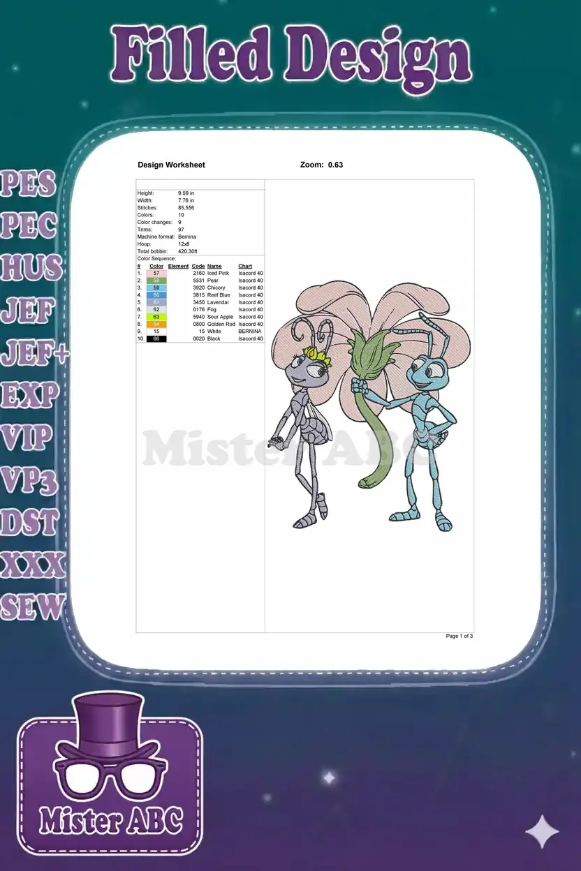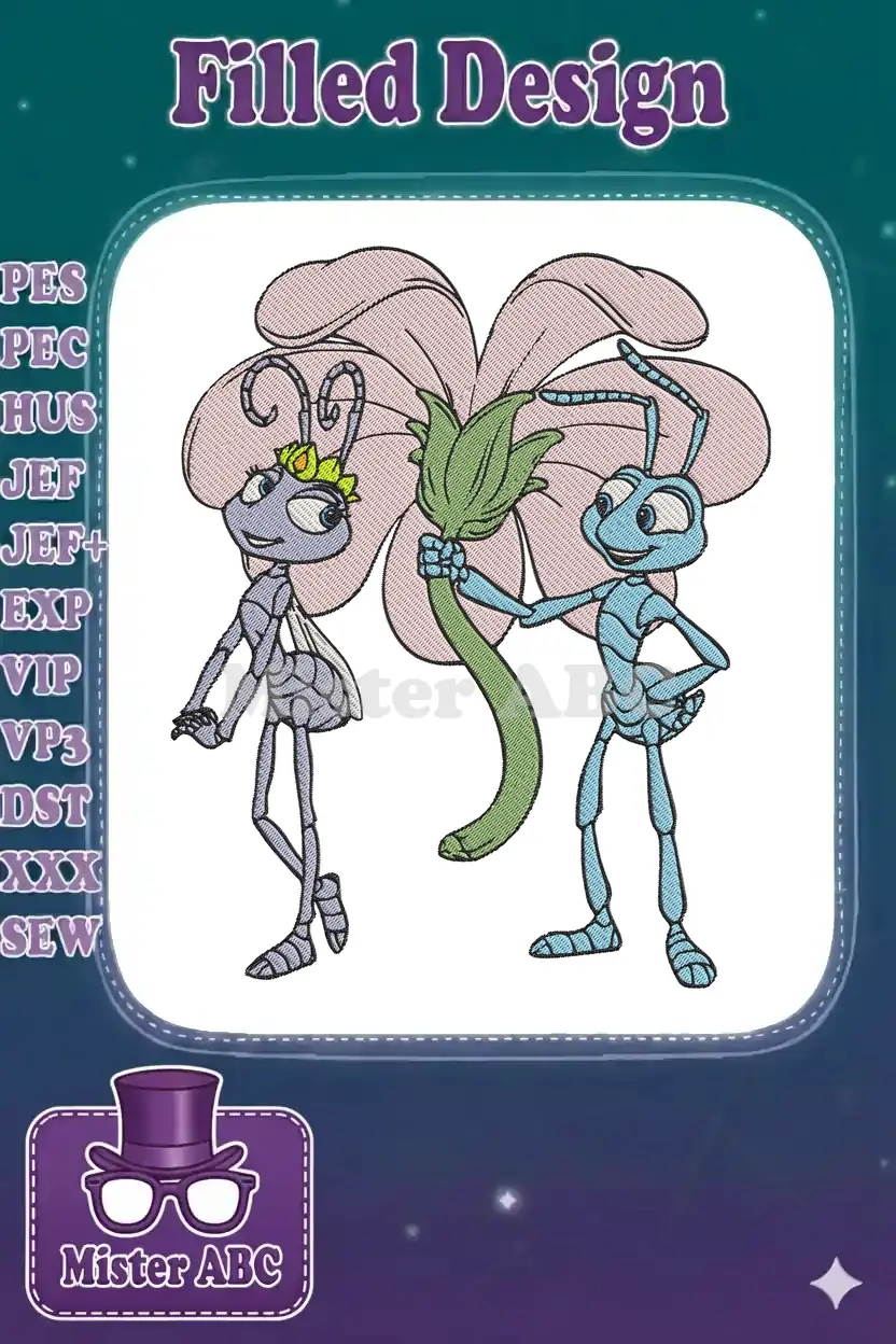 Disney A Bug’s Life Flik and Princess Atta flower embroidery designs