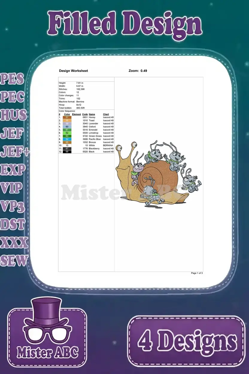 Disney A Bugs Life Flik Atta Dot Hopper Snail Ride Colony Character Scenes Set – Filled Embroidery Design