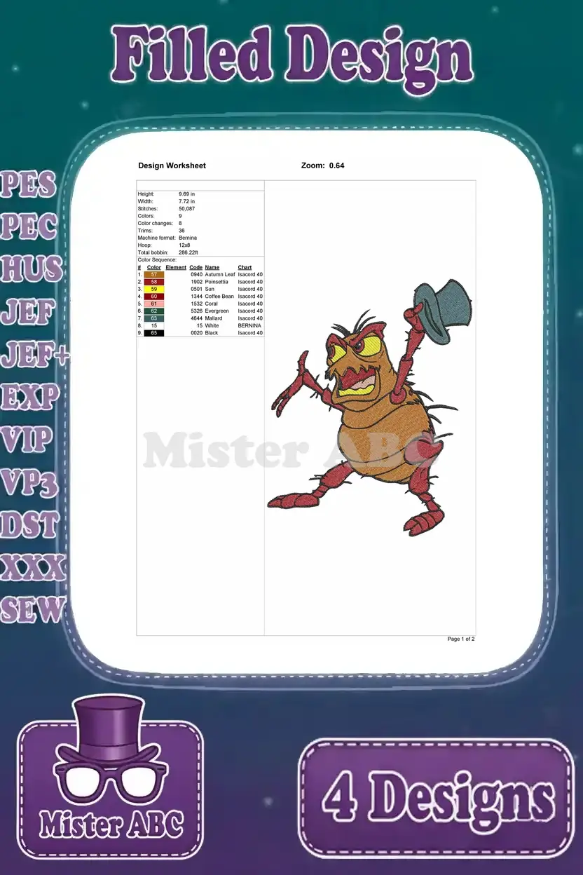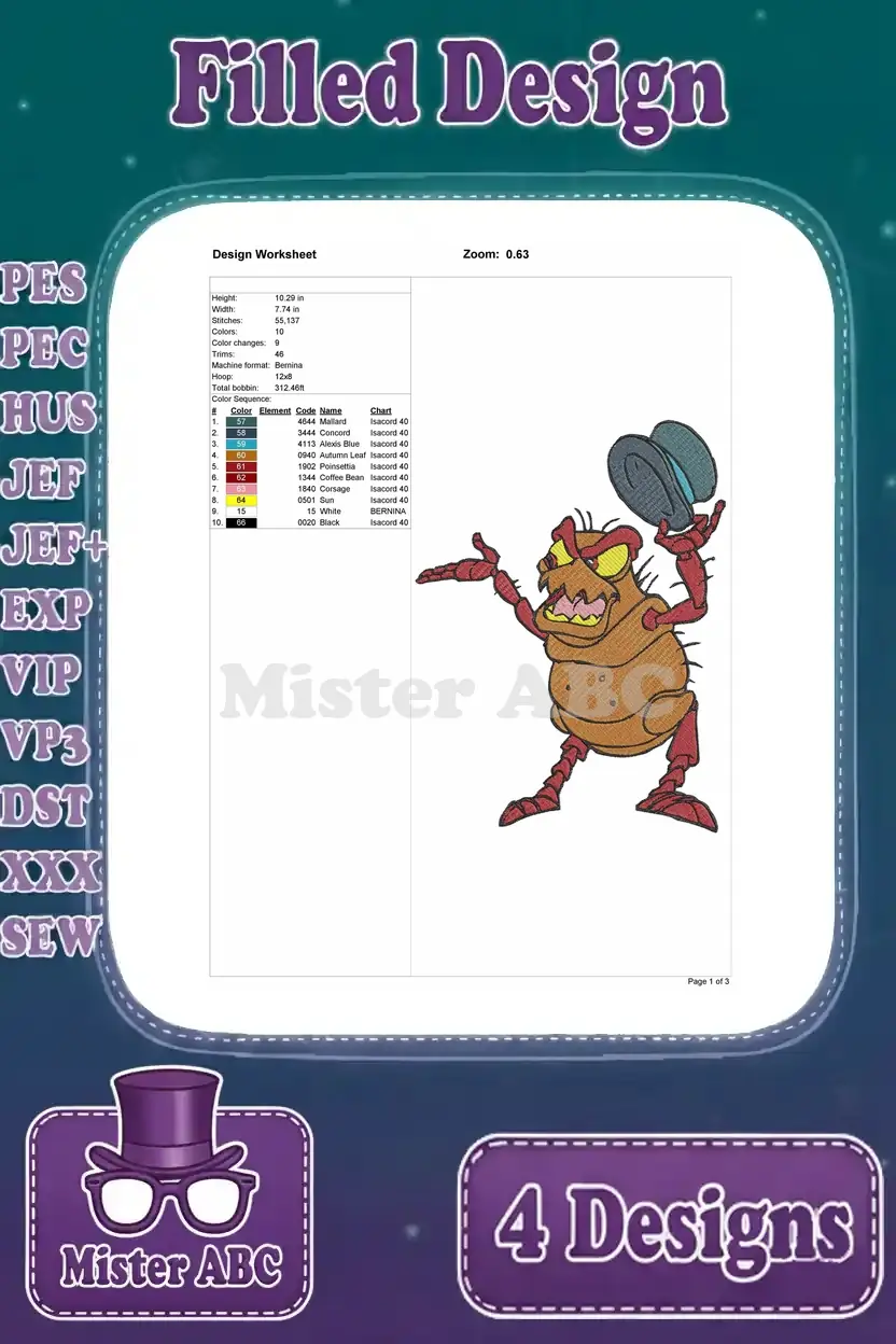 Disney A Bugs Life Manny Praying Mantis Thumper Grasshopper Magic Fight Poses Designs – Filled Embroidery Design
