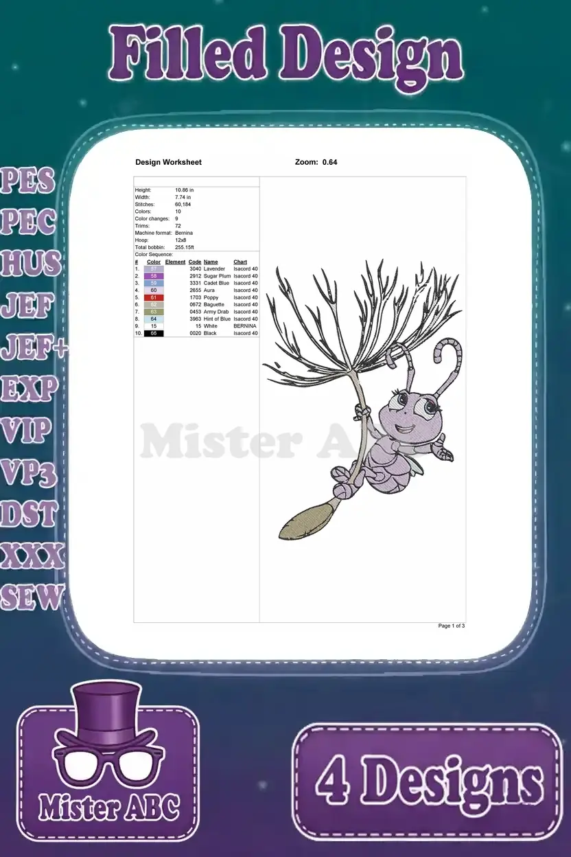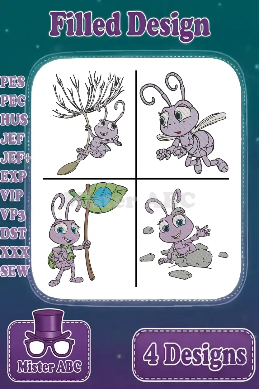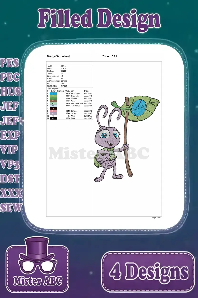 Disney A Bugs Life Princess Dot Ant Adventurer Leaf Shield Running Brave Pup – Filled Embroidery Design