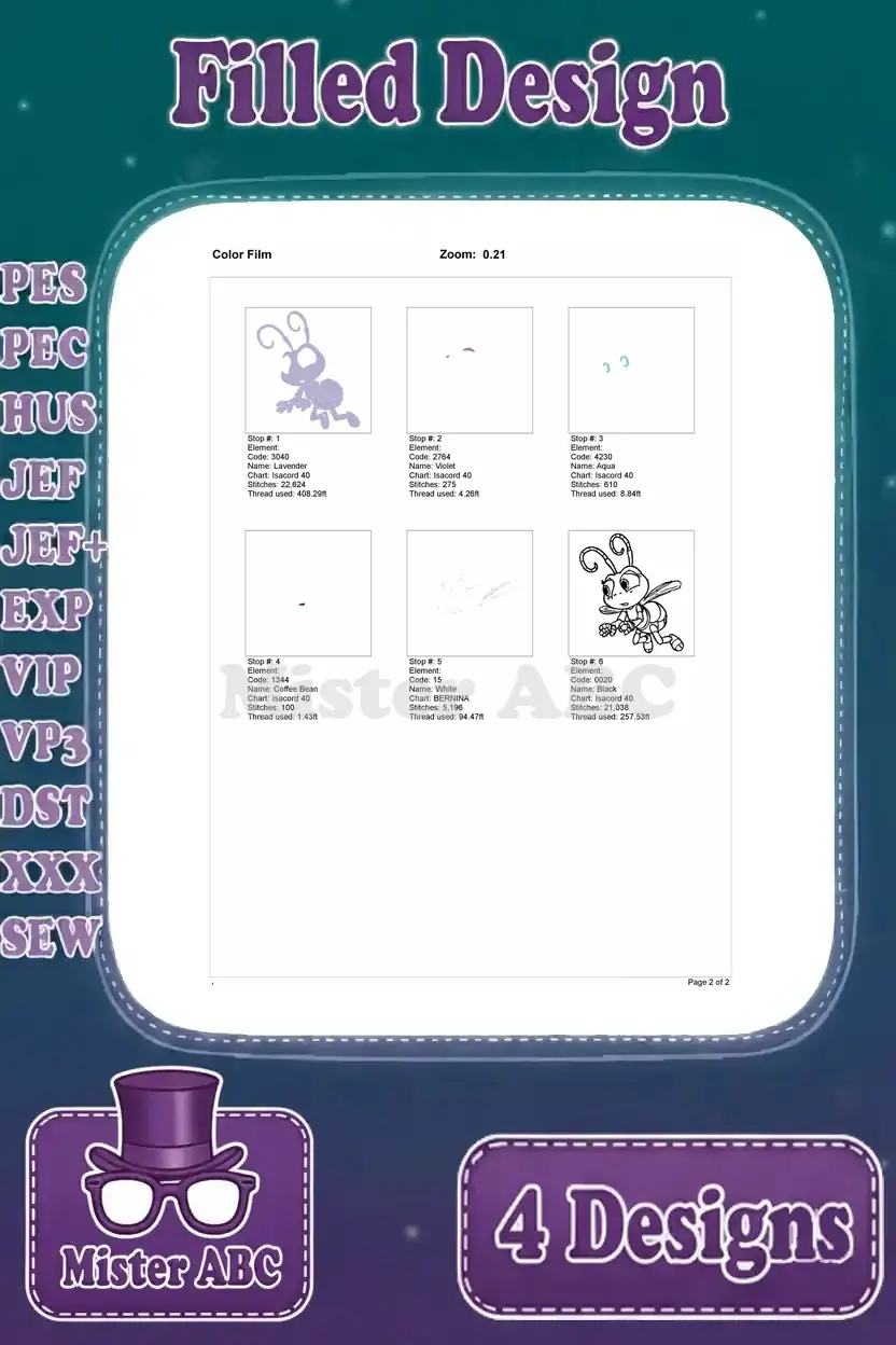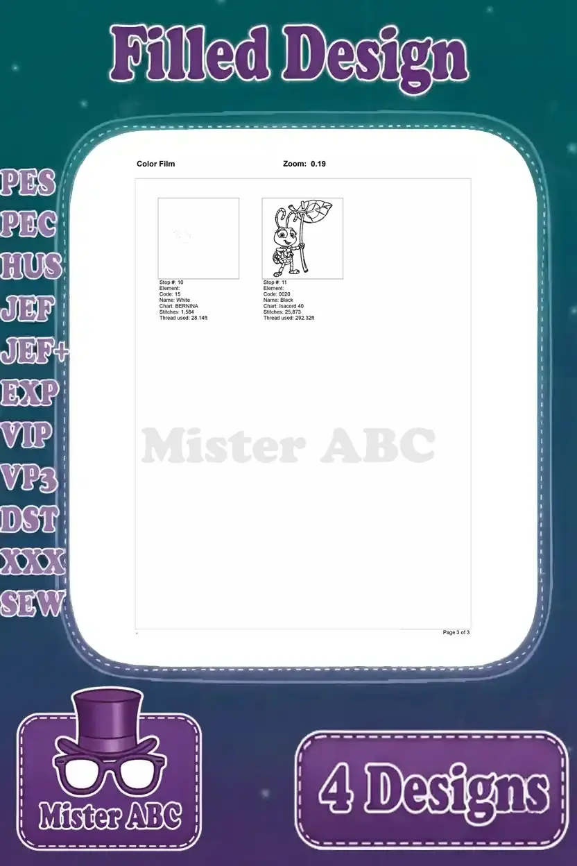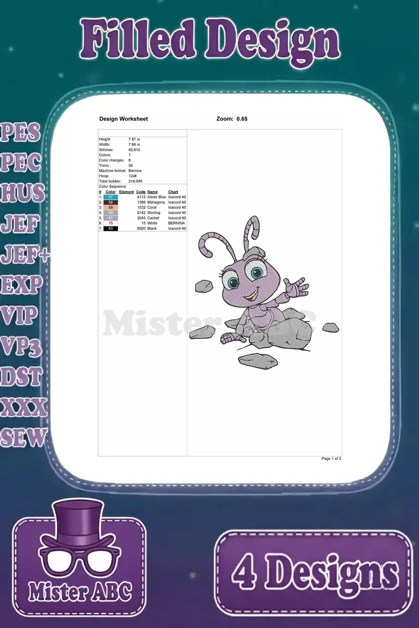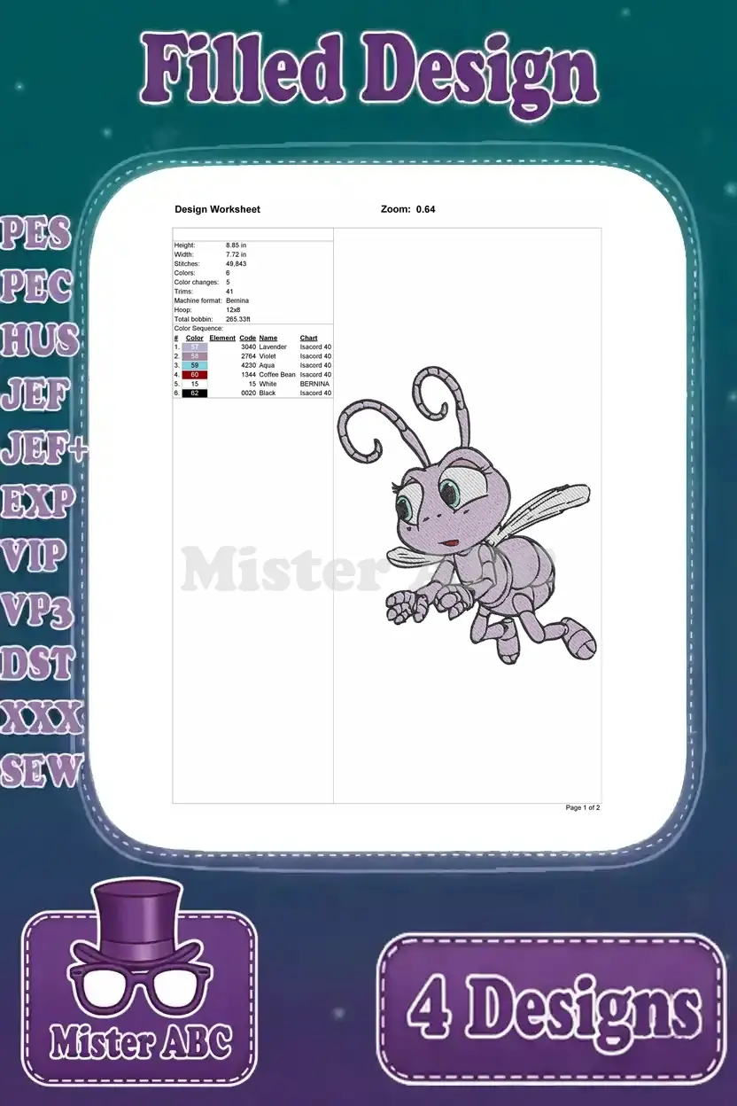 Disney A Bugs Life Princess Dot Ant Adventurer Leaf Shield Running Brave Pup – Filled Embroidery Design
